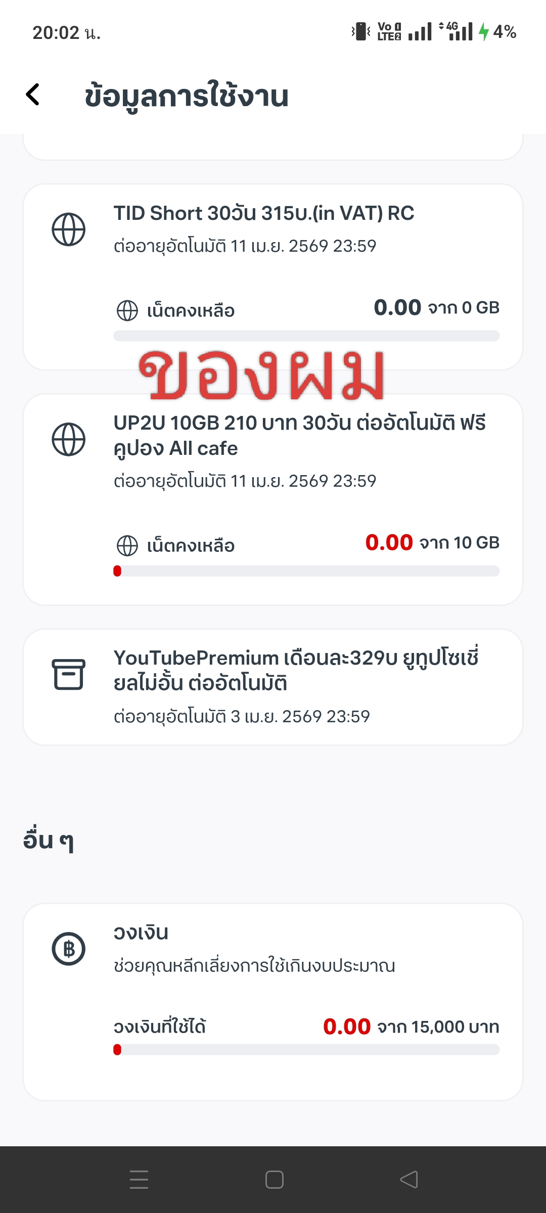 ต้องการขอเพิ่มวงเงินรายเดือนครับ และขอให้ทำการยกเลิกแพ็คเกจเสริมอินเตอร์เน็ต และ โรมมิ่ง ครับ ไม่สามารถซื้อของในแอพพลิเคชั่นได้ครับตรวจสอบให้ด้วย