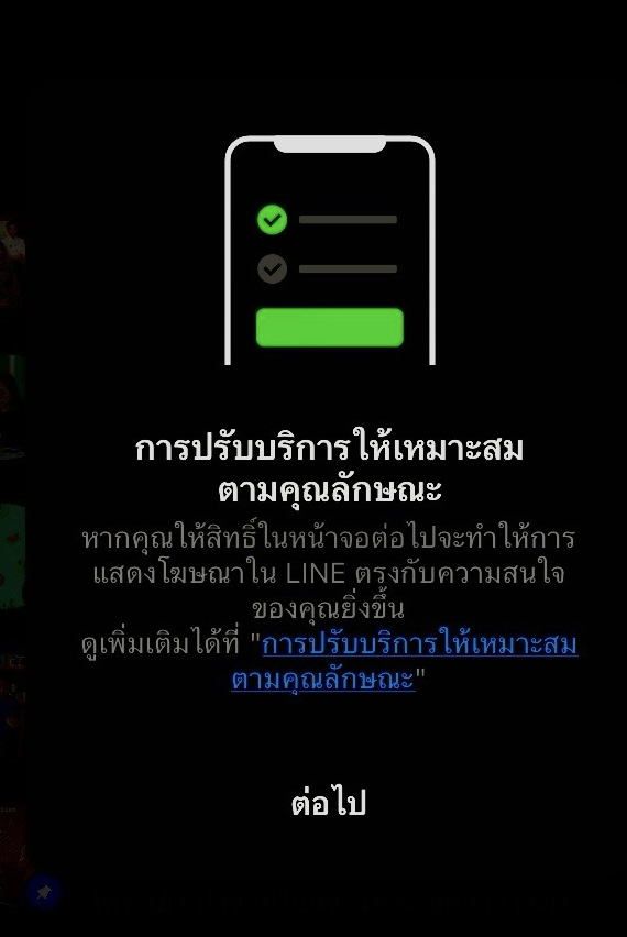 Pop up ให้ยอมรับ การปรับบริการให้เหมาะตามคุณลักษณะ พอกดปุ่ม ต่อไป แล้ว pop up ยังแสดงอยู่ค่ะ