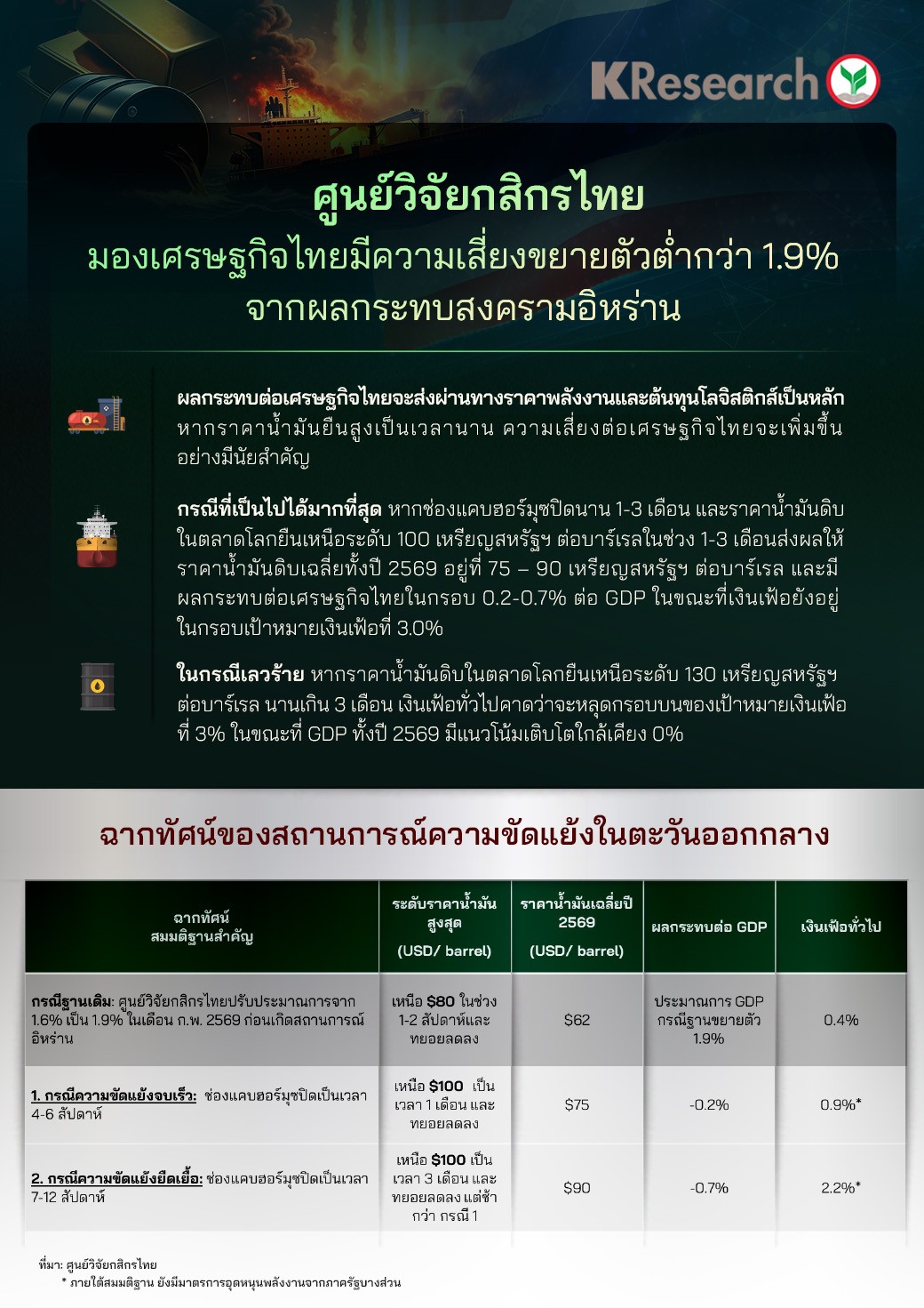 โดยศูนย์วิจัยกสิกรไทยประเมินปัจจัยสำคัญที่ต้องติดตาม ได้แก่ ตัวเลขส่งออกเดือนก.พ. ของไทยสถานการณ์ตึงเครียดในตะวันออกกลางและทิศทางเงินทุนต่างชาติ ส่วนตัวเลขเศรษฐกิจสหรัฐฯ ที่สำคัญ ได้แก่ ดัชนี PMI ภาคการผลิตและการบริการเดือนมี.ค. (เบื้องต้น) และจำนวนผู้ขอรับสวัสดิการว่างงานรายสัปดาห์