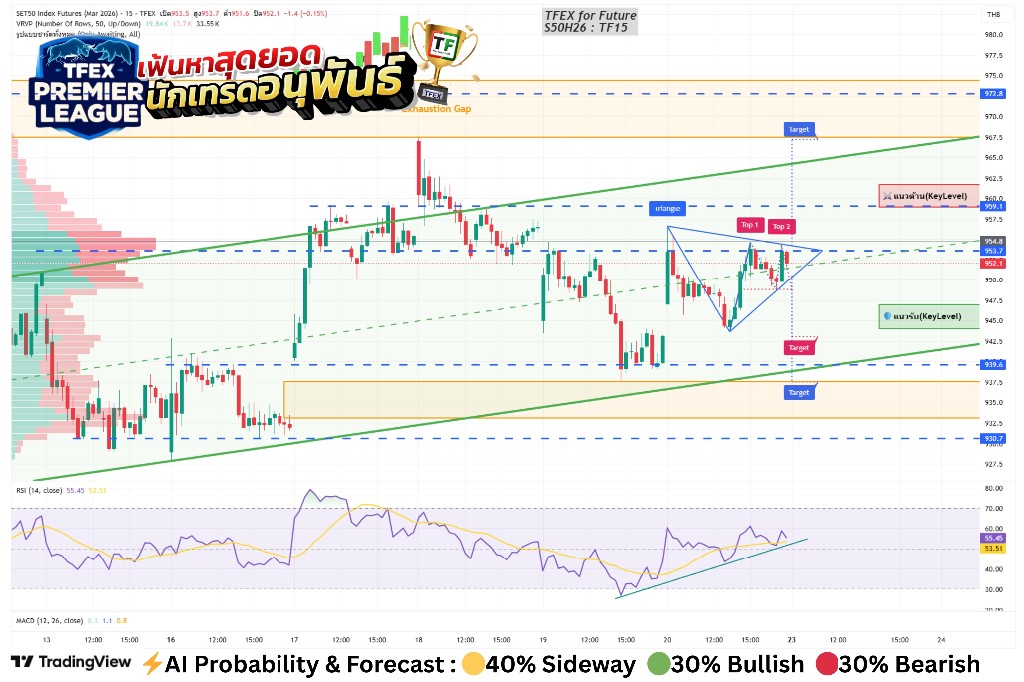 ⚔️ แนวต้าน (Resistance): 959 (จุดร่วม 2 Indicators)