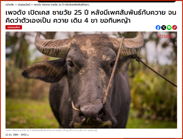 ความว่า ชายอายุ 25 ปี หลังจากมีกิจกรรมทางเพศกับควาย