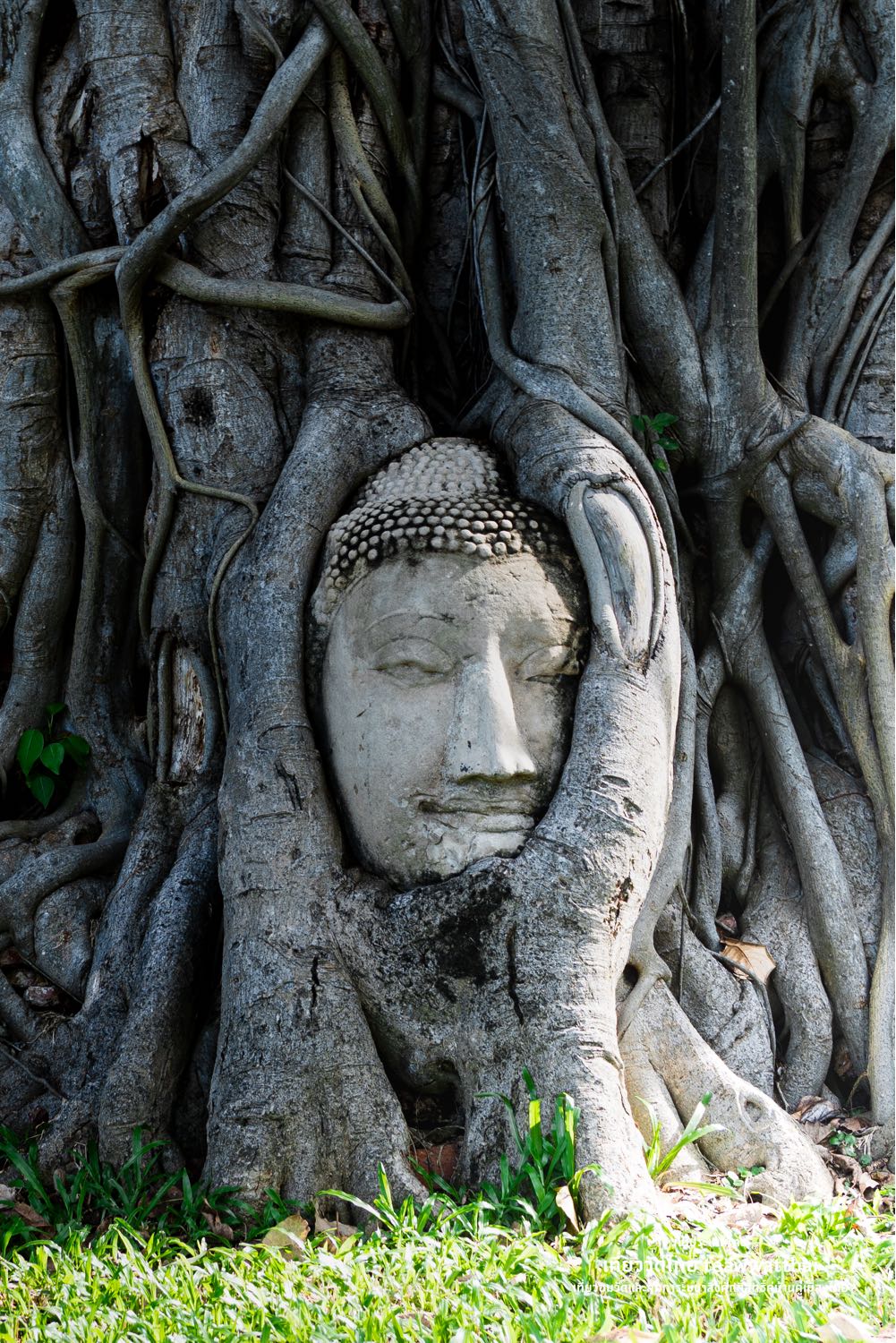 เศียรพระพุทธรูปในรากไม้ ณ วัดมหาธาตุ