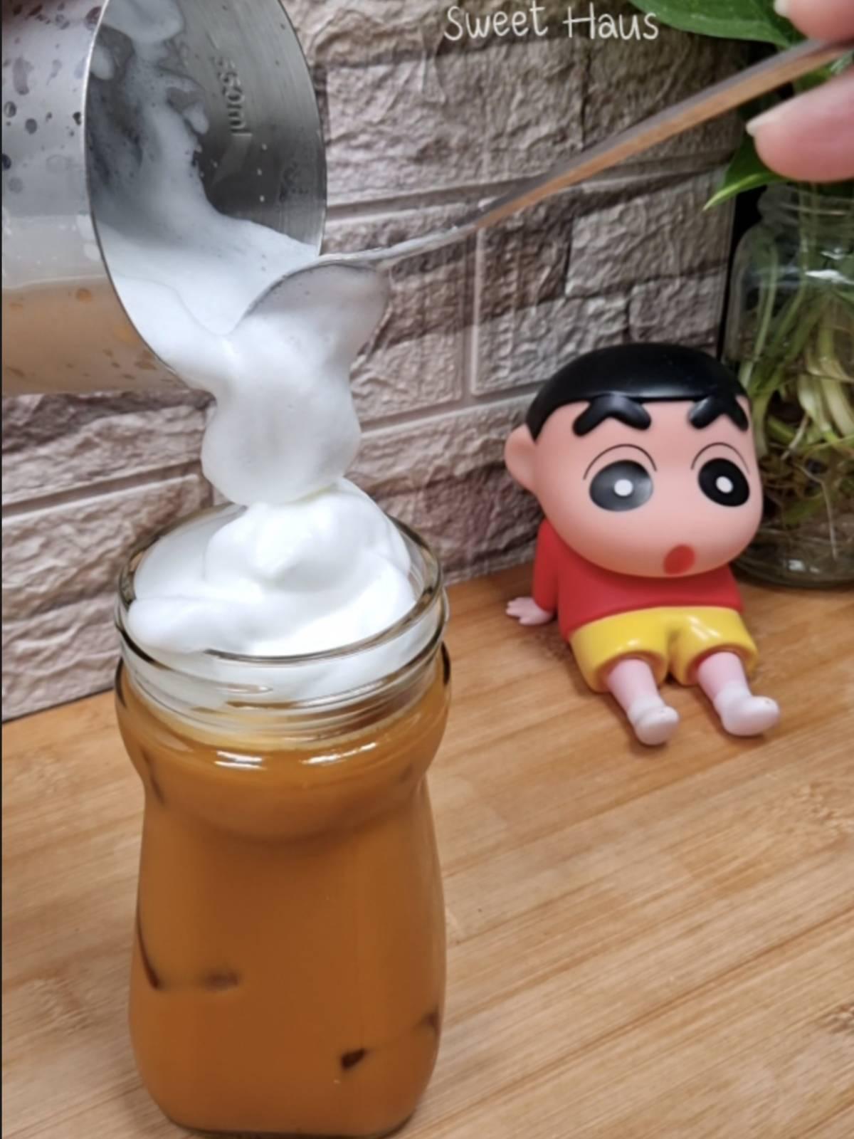 ตีฟองนม นำไปท้อปด้านบน