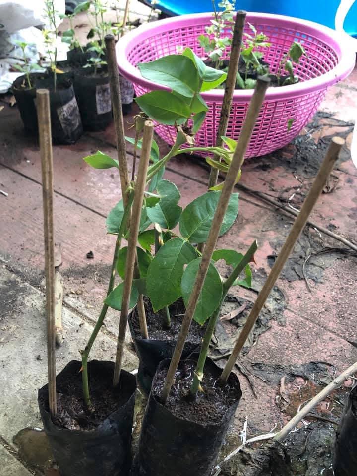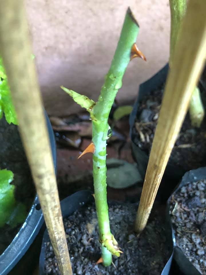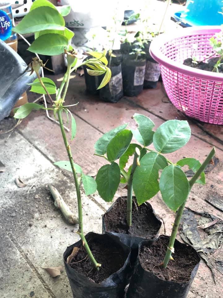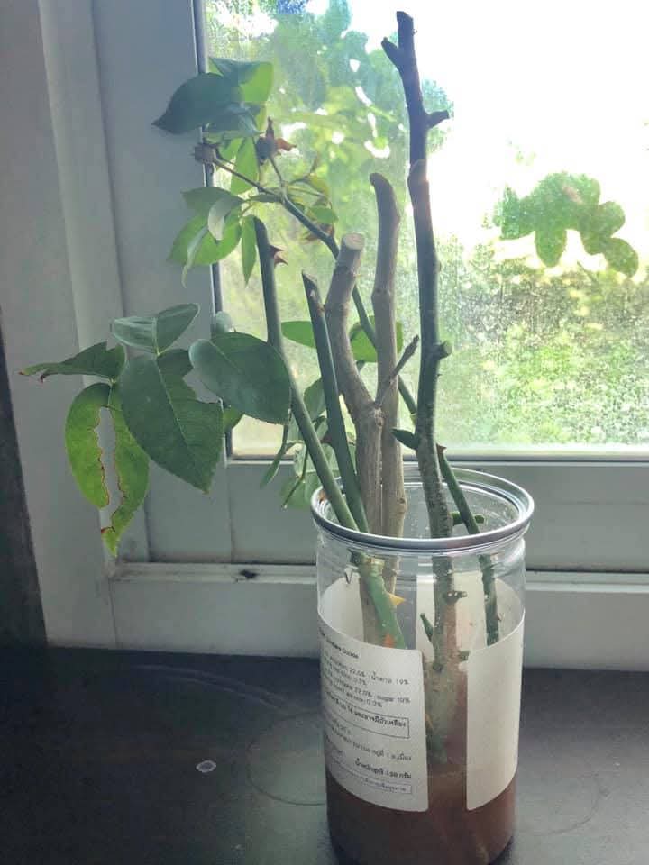 8. พอครบ 6 วันหรือ 1 สัปดาห์ กิ่งกุหลาบจะเริ่มแตกหน่อใหม่บนกิ่ง และสามารถย้ายลงกระถางหรือลงดินปลูกได้เลยคะ