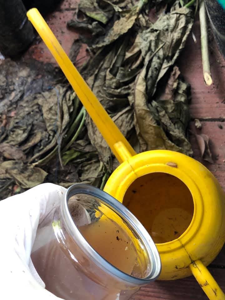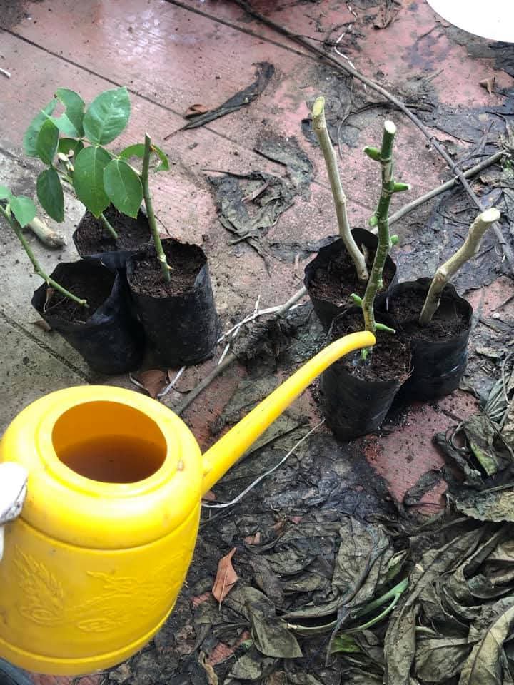5. แล้วเอาน้ำยาเร่งรากที่เหลือมาผสมน้ำ แล้วนำมารดดินจนชุ่ม