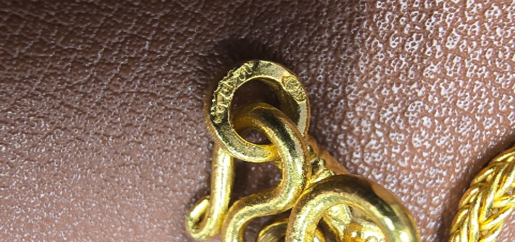 อยากจะทราบว่าทองแท่งอันนี้เป็นของยี่ห้อไหนหรอครับ และภาษาจีนที่ตอกบนสร้อยอันนี้อ่านว่าอะไรและเป็นของที่ไหนหรอครับ