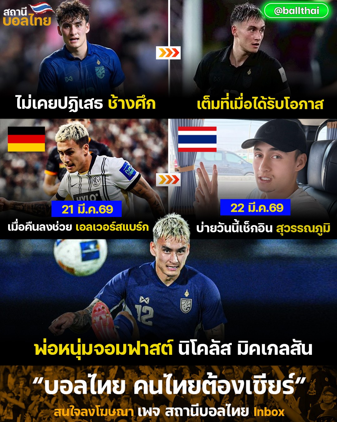 #BallThaiStand ⚫️จู๊ด ซุ่นทรัพย์-เบลล์ กองหน้าลูกครึ่งไทย-อังกฤษ จากสโมสร กริมสบี้ ทาวน์ ในลีกทู อังกฤษ ตัดสินใจตอบรับ เลือกมาเล่นให้ทีมชาติไทย เป็นที่เรียบร้อย
