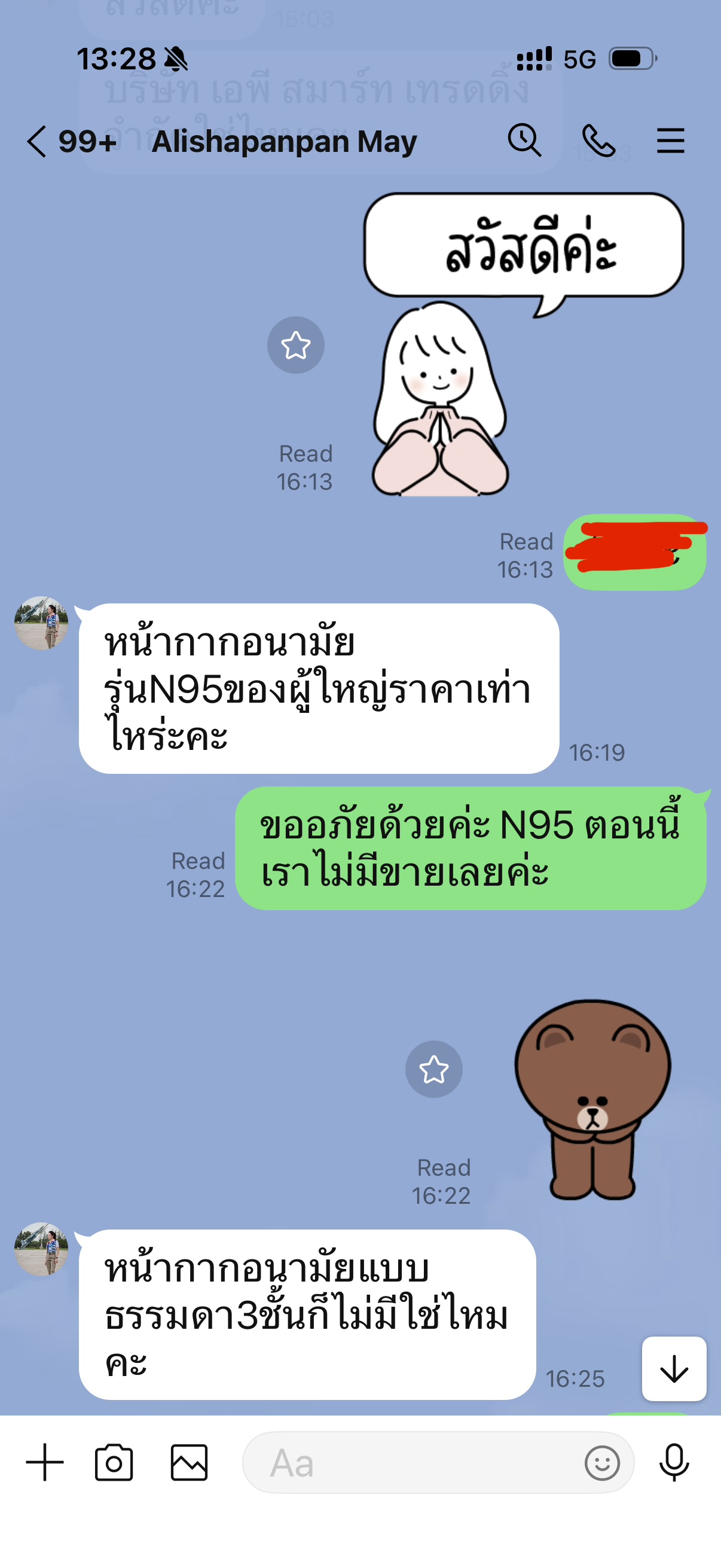 มีคน add line มาถามสินค้าเรา เป็น หน้ากาก N95 และ หน้ากากอนามัย ซึ่งเราเป็นบริษัทขายเวชภัฑ์การแพทย์อยู่แล้ว