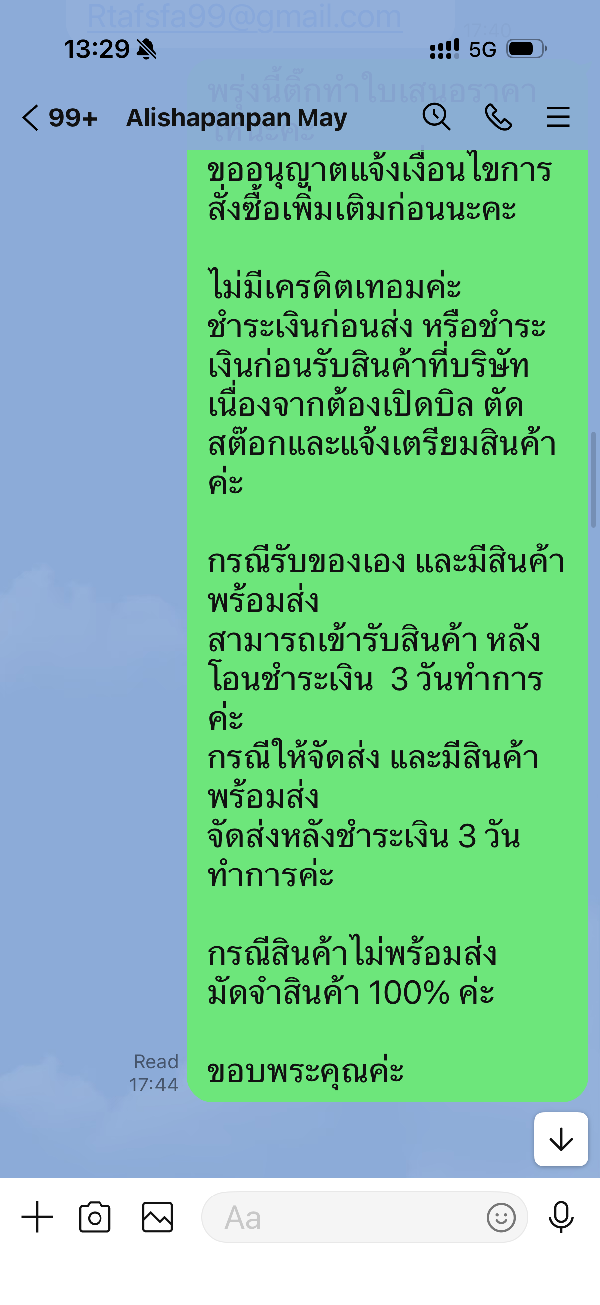 พร้อมทั้ง กรณีจ่ายเป็นเชค ต้องรอให้เคลียริ่ง เงินเข้าบริษัทก่อนเท่านั้น ถึงจะส่งของได้