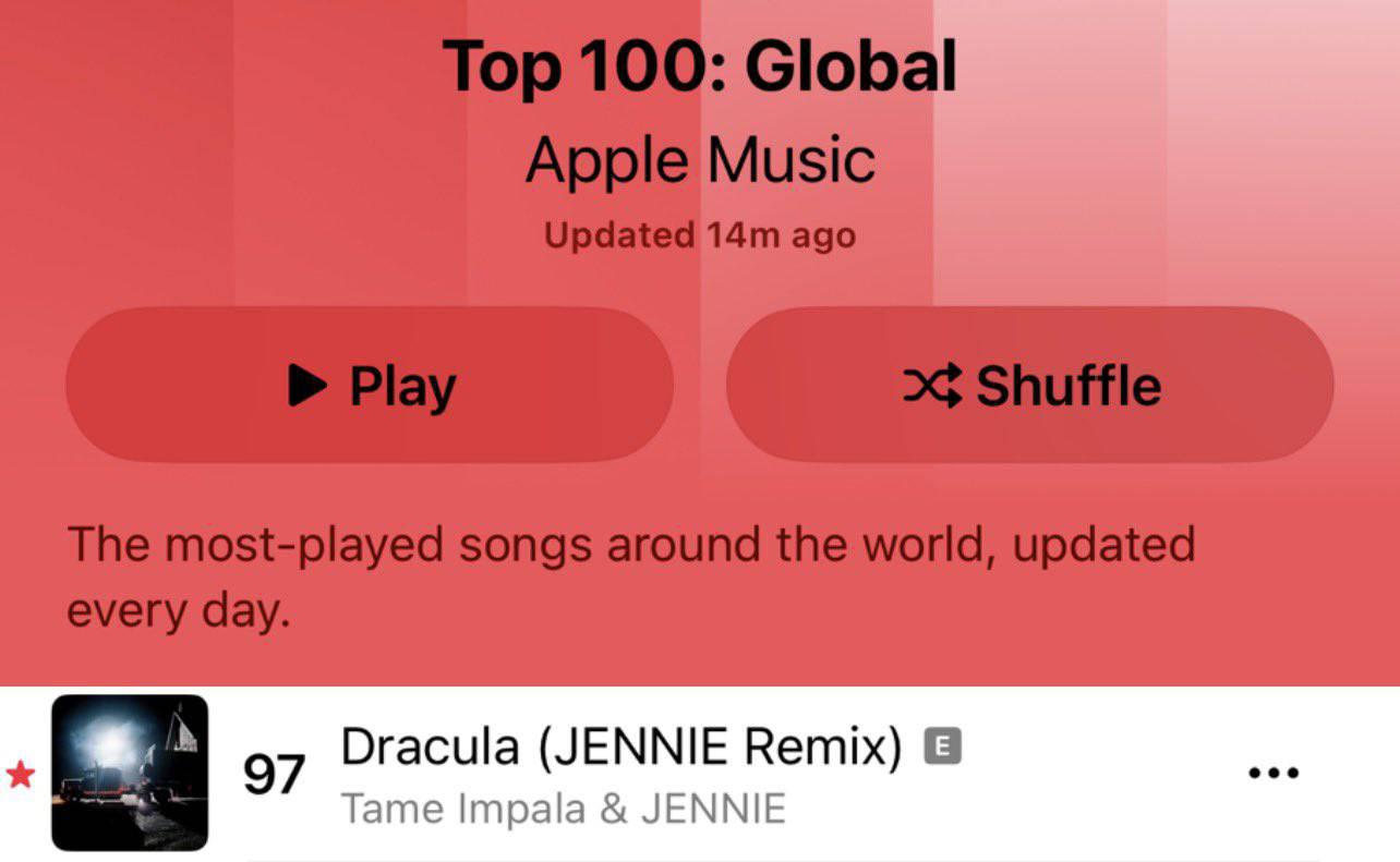 Dracula – JENNIE Remix เปิดตัวบนชาร์ต Apple Music Global เป็นครั้งแรก หลังปล่อยออกมาเกือบ 2 เดือน 🧛♀️👏