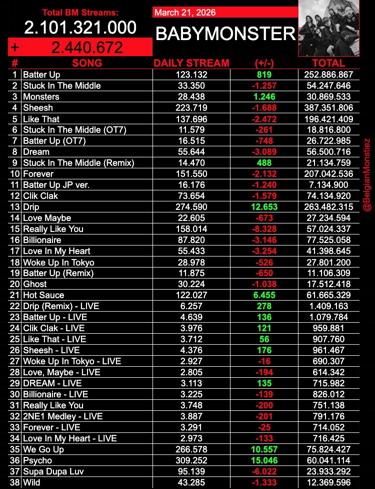 ล้านแล้วจ้า เพลง WE GO UP ของ BABYMONSTER ล่าสุดมียอดสตรีมรายวันบน Spotify ทะลุ 1 ล้านสตรีมไปอยู่ที่ 1,051,514 สตรีม