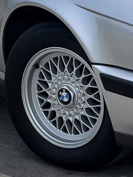 ถึงเวลาเปลี่ยนยางแล้วพอดี รถ BMW E34 525i ยางที่ใส่อยู่ตอนนี้คือขนาด 205/65R15 กับล้อแมกซ์เดิมๆ ขนาด 15 x 7 นิ้วครับ