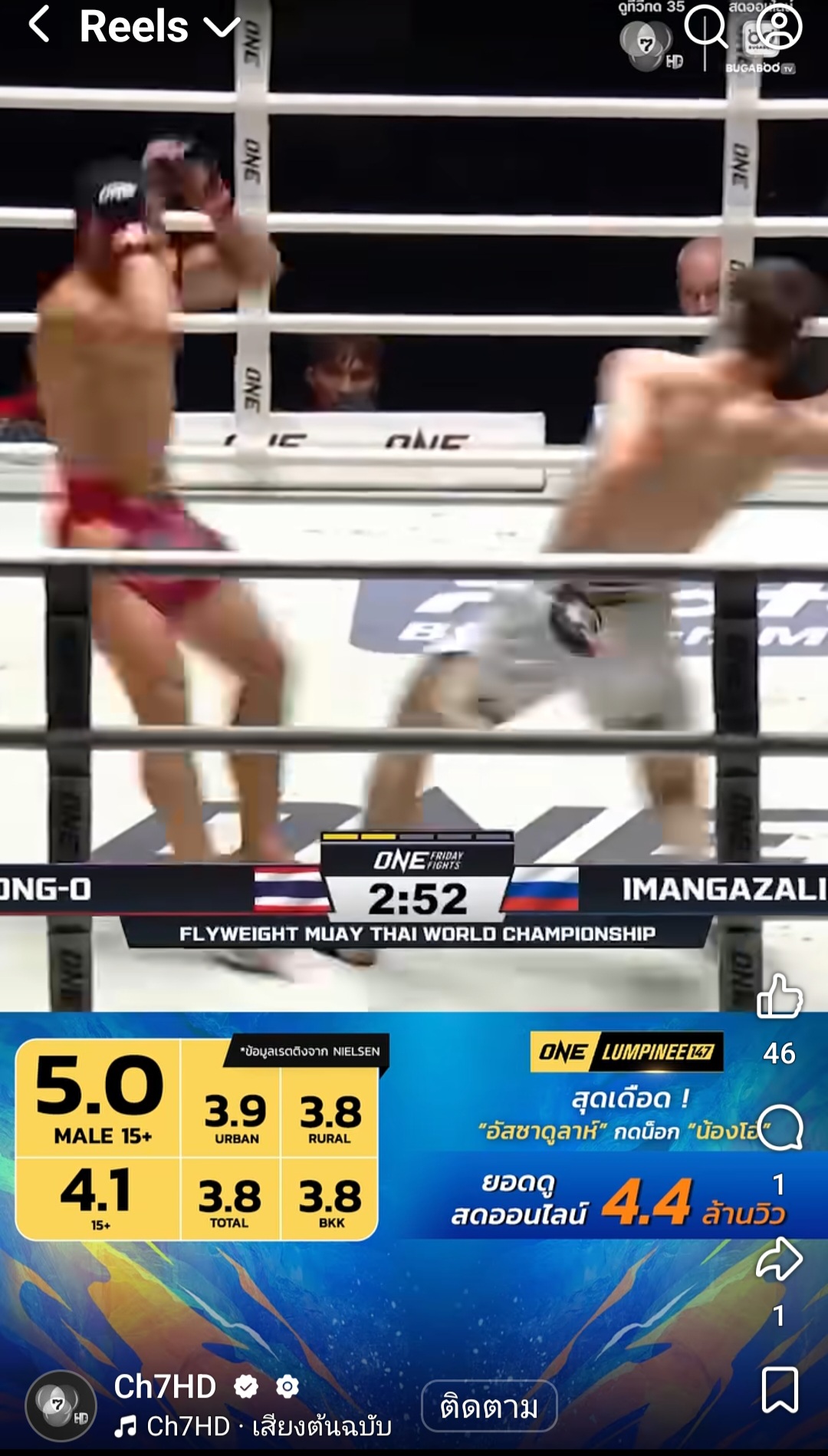 เรตติ้ง มวยลุมพินี 3.8, Play Park 1.9, เลดี้ทุ่งกระบือบาน 4.2, ปิ่นอนงค์ 3.7
