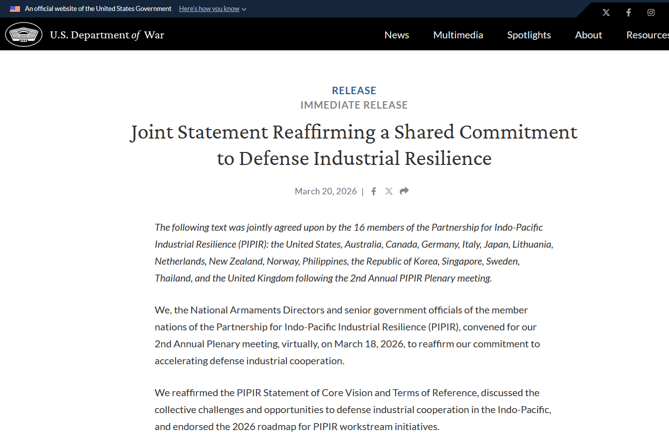 ไทยเข้าร่วม "ความร่วมมืออุตสาหกรรมผลิตอาวุธในอินโดแปซิฟิก" ที่มีสหรัฐเป็นแกนนำ 16 ชาติ