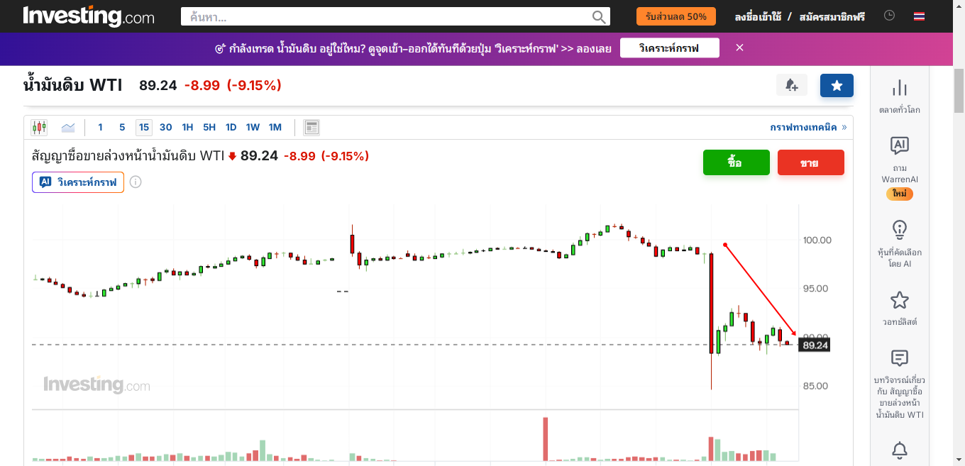 ประเด็นร้อนอันดับหนึ่งคงหนีไม่พ้นสถานการณ์ในตะวันออกกลาง วันนี้ราคาน้ำมันดิบ WTI วิ่งสู้ฟัดขึ้นไปแตะ $100 ต่อบาร์เรล มาแป๊บหนึ่ง ก่อนจะย่อตัวลงมาแถวๆ $90 หลังจากมีสัญญาณบวกจากการที่สหรัฐฯ ส่งสัญญาณพร้อมเปิดโต๊ะเจรจากับอิหร่าน