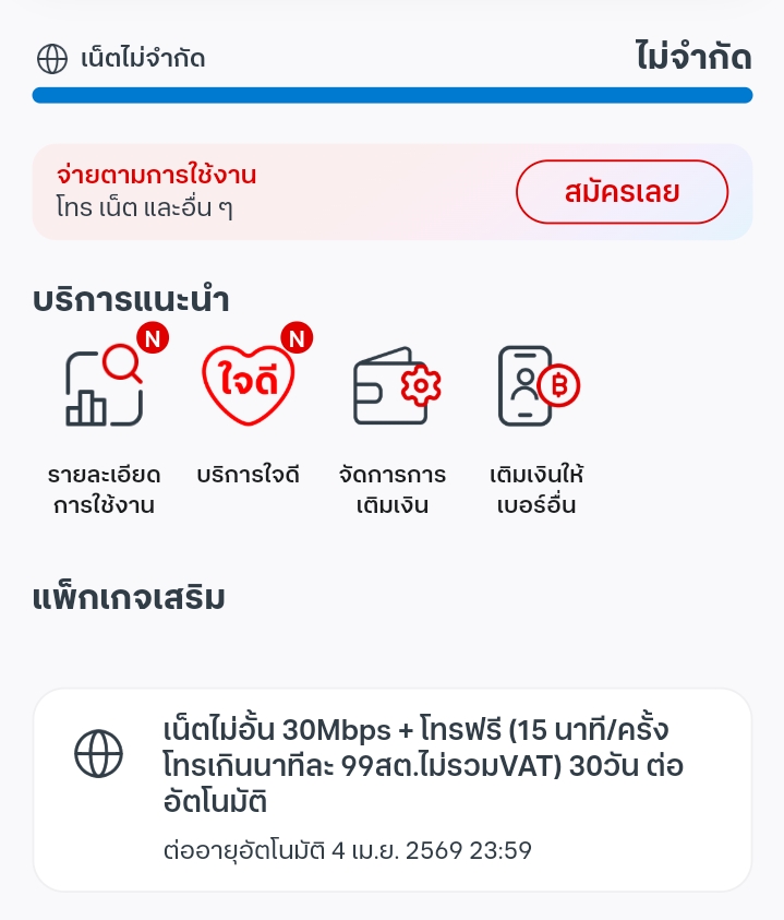 โปรย้ายค่ายจากais อยากได้เน็ตแบบเติมเงิน 30 วัน เน็ต 10 Mbpsไม่ลดสปีด