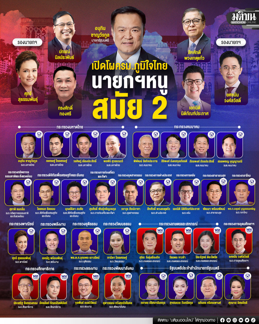ขยับกันหลายรอบ ถึงจะลงตัว สรุปโผรายชื่อ คณะรัฐมนตรี รัฐบาลอนุทิน 2 จบแล้ว อยู่ในขั้นตอนการยื่นประวัติให้หน่วยงานตรวจสอบ