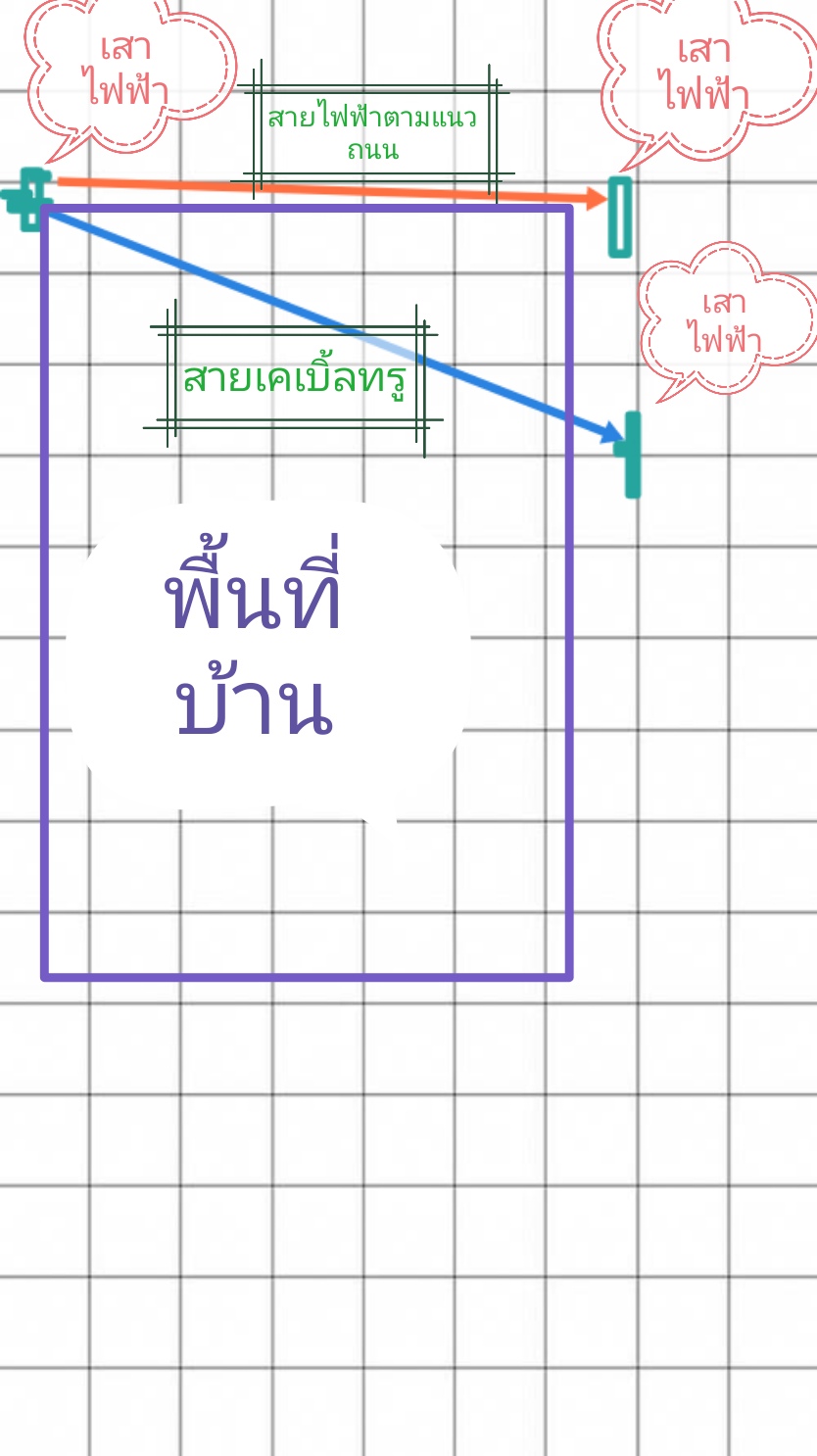 เดิมมีสายไฟฟ้า กับสายสื่อสาร เดินผ่านเข้ามาในพื้นที่บ้าน ได้ดำเนินการย้ายสายไฟฟ้าออกไปแล้ว เหลือสายสื่อสารป็นสายเคเบิ้ลของทรูเส้นเคเบิ้ลขนาดเกือบเท่านิ้วโป้ง(tot, 3bb มาดูแล้วไม่ใช่ บอกว่าเป็นของทรู)