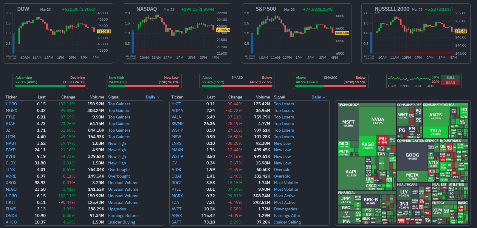 และ Nasdaq Composite เพิ่มขึ้น 299.15 จุด หรือ 1.38% ปิดที่ 21,946.76 จุด โดยถือเป็นการปรับขึ้นรายวันที่มากที่สุดนับตั้งแต่ต้นเดือนกุมภาพันธ์