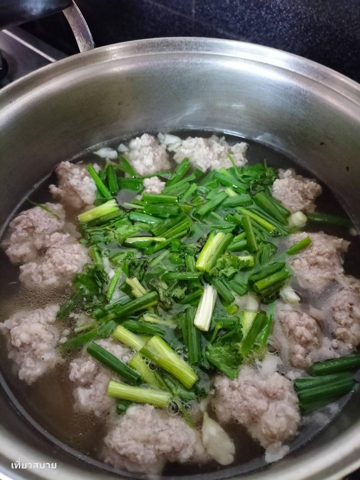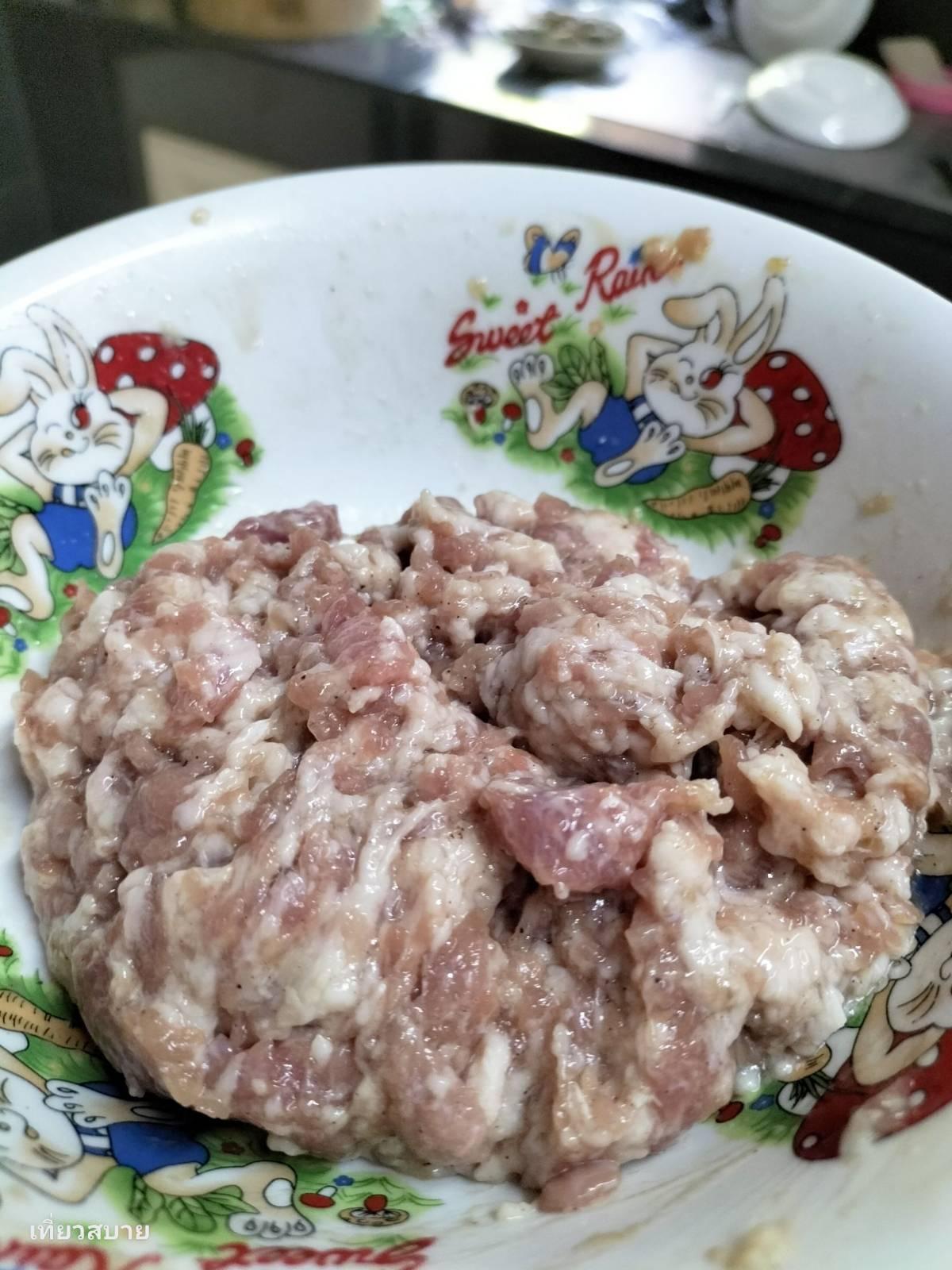 2. ปั้นหมูสับใส่ลงไปทันที