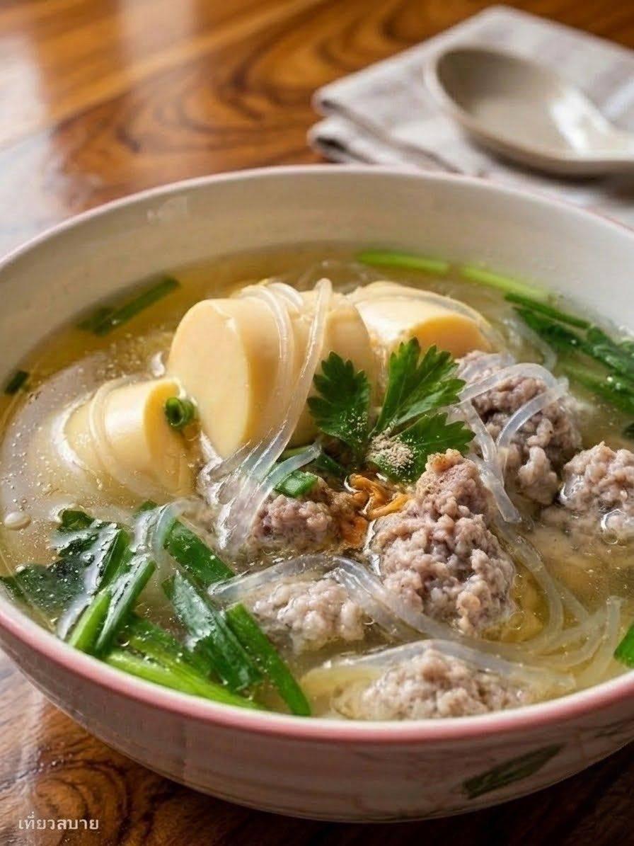 🥣 แจกสูตร “ต้มจืดเต้าหู้หมูสับวุ้นเส้นเกาหลี” งบไม่เกิน 100 บาท น้ำซุปใส หมูนุ่ม เส้นหนึบ ทำง่ายมาก 💯