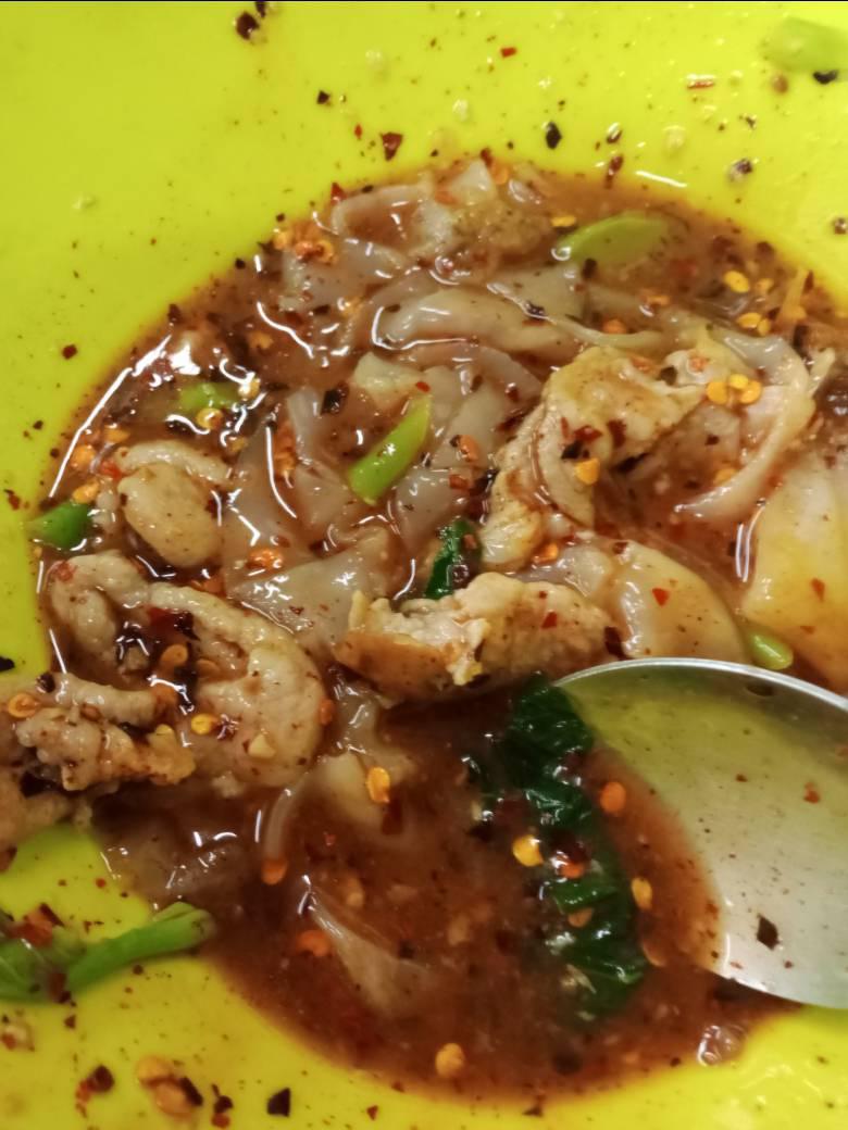 พอคุณภรรยาอิ่มแล้ว ราดหน้า ผมต้องเติมพริกป่นและน้ำส้มพริกดองเพิ่ม เพราะเธอกินแบบไม่เติมอะไรเลย