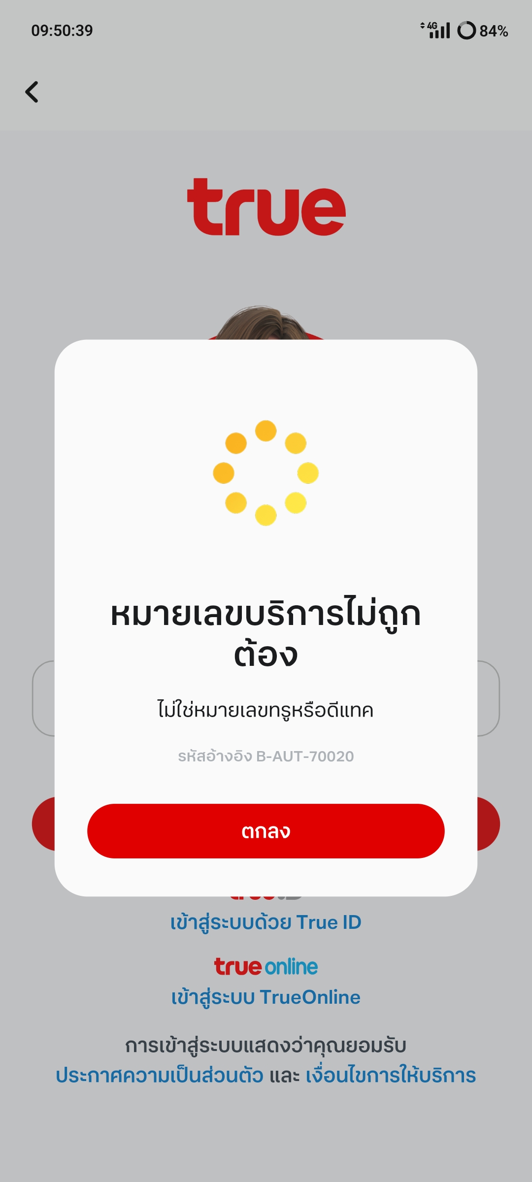 แอพTrue ขึ้นว่าเบอร์ไม่ใช่ของทรู