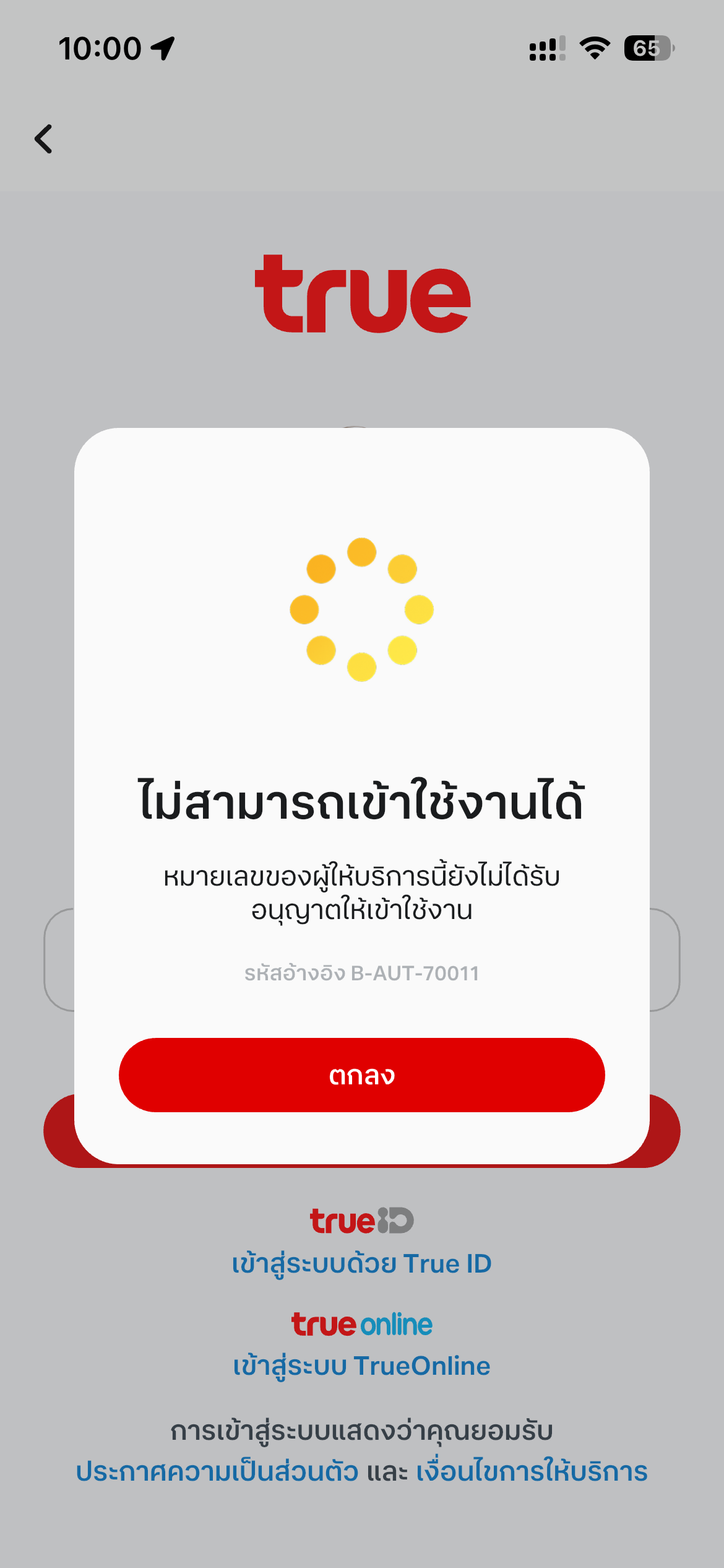 ย้ายค่ายมาทรูแต่เข้าระบบแอปพิเคชั้นไม่ได้