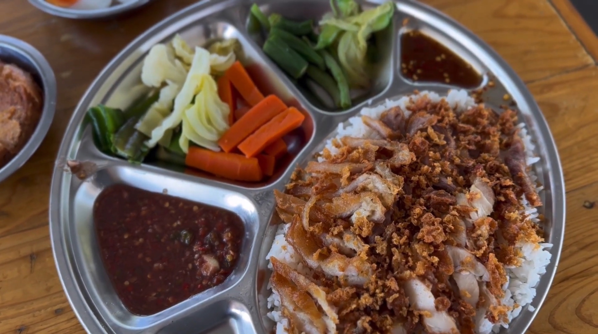 • หมูทอด: ทอดมาได้กรอบกำลังดีครับ ไม่แข็งจนเกินไป กินคู่กับข้าวสวยร้อนๆ คือฟินมาก