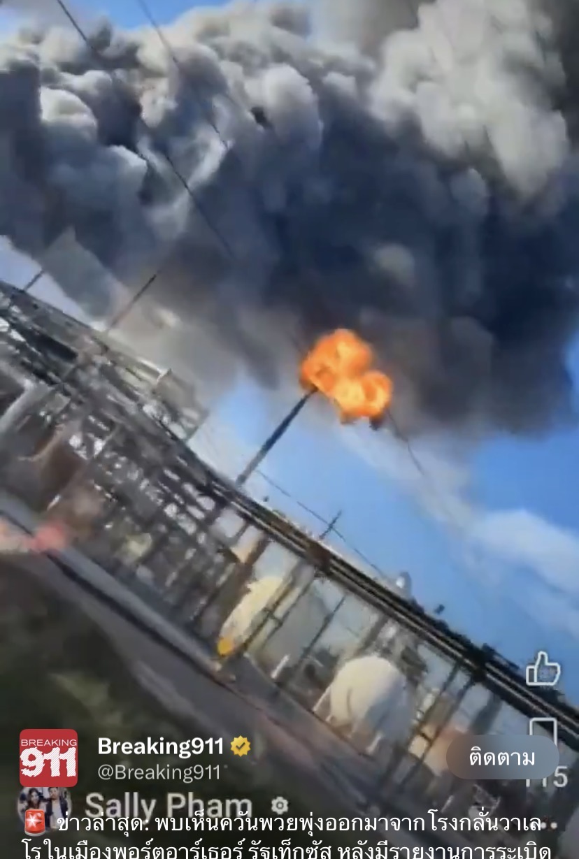 ล่าสุด: พบเห็นควันพวยพุ่งออกมาจากโรงกลั่นวาเลโรในเมืองพอร์ตอาร์เธอร์ รัฐเท็กซัส หลังมีรายงานการระเบิด
