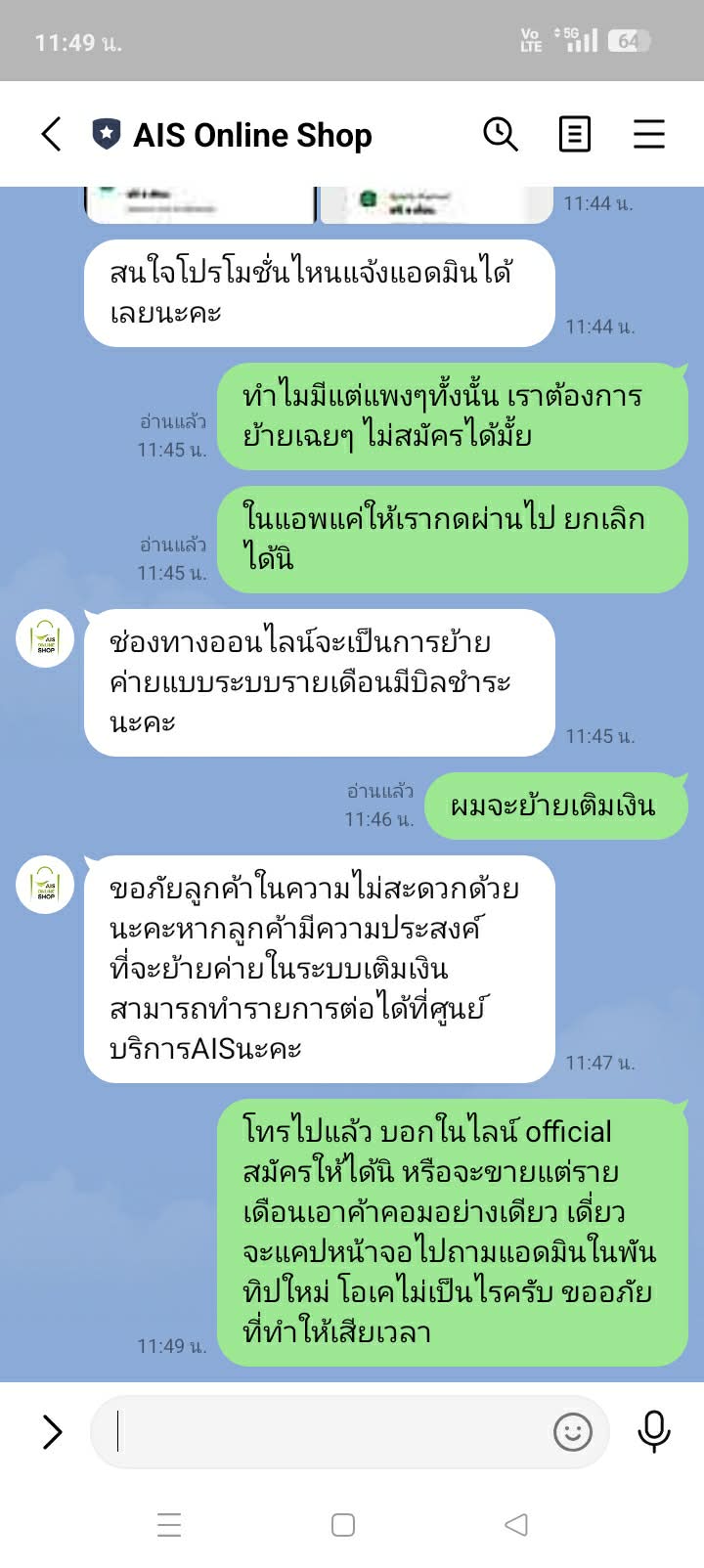 ทำไมพนักงานใน Line Official ของ AIS บอกว่าไม่ลงทะเบียนย้ายค่ายซิมเติมเงินให้ลงให้เฉพาะย้ายค่ายแล้วสมัครรายเดือนเท่านั้น