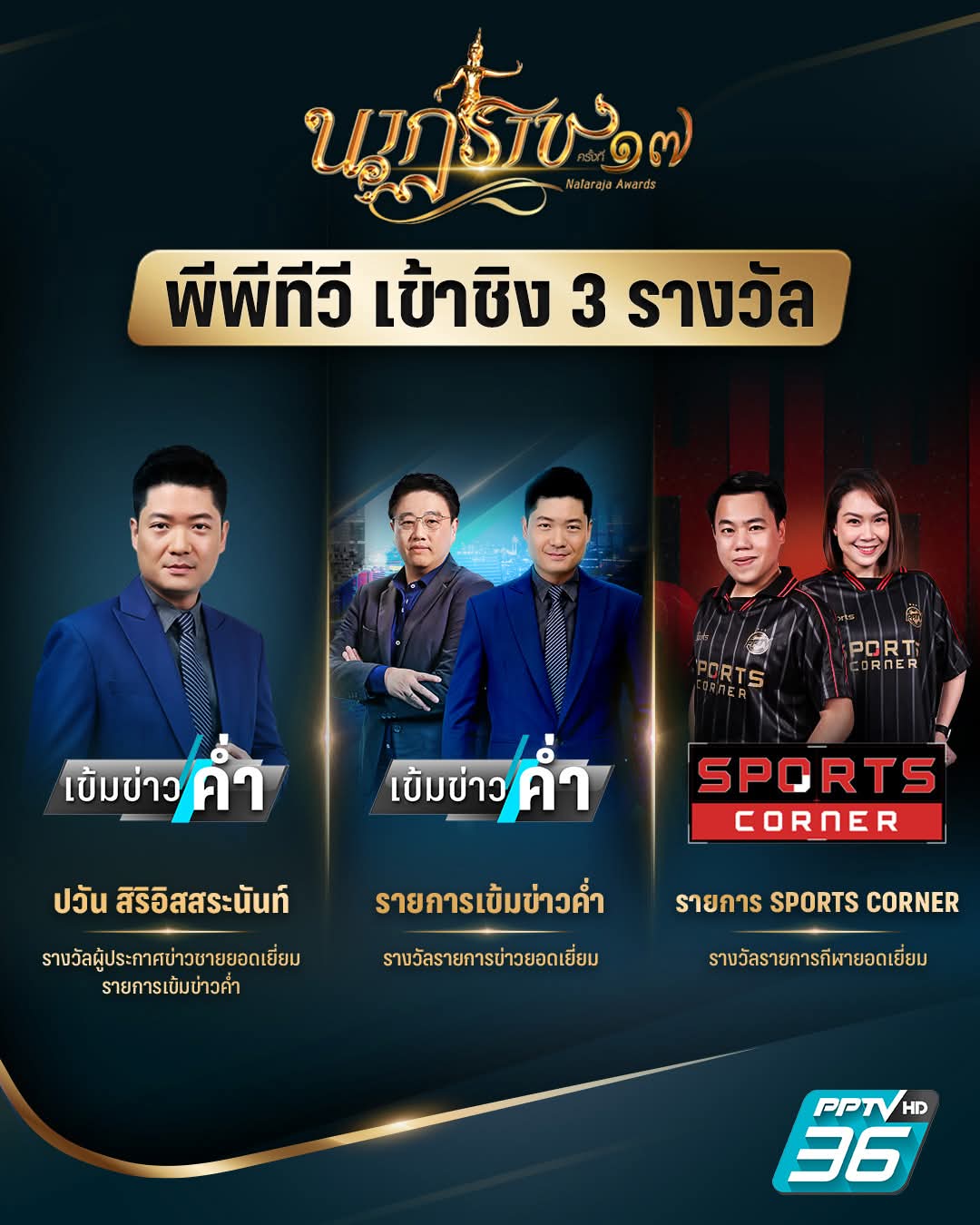 #นาฏราชครั้งที่17 #PPTVHD36 #เข้มข่าวค่ำ #ทันโลกDaily #SPORTSCORNER