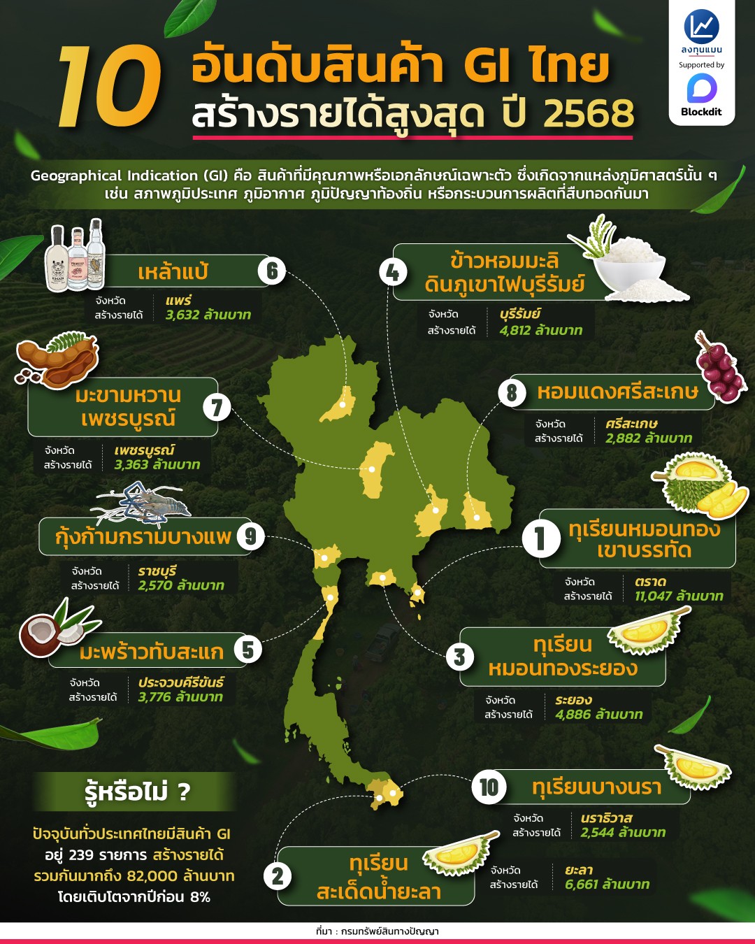 10 อันดับสินค้า GI ไทย สร้างรายได้สูงสุด ปี 2568