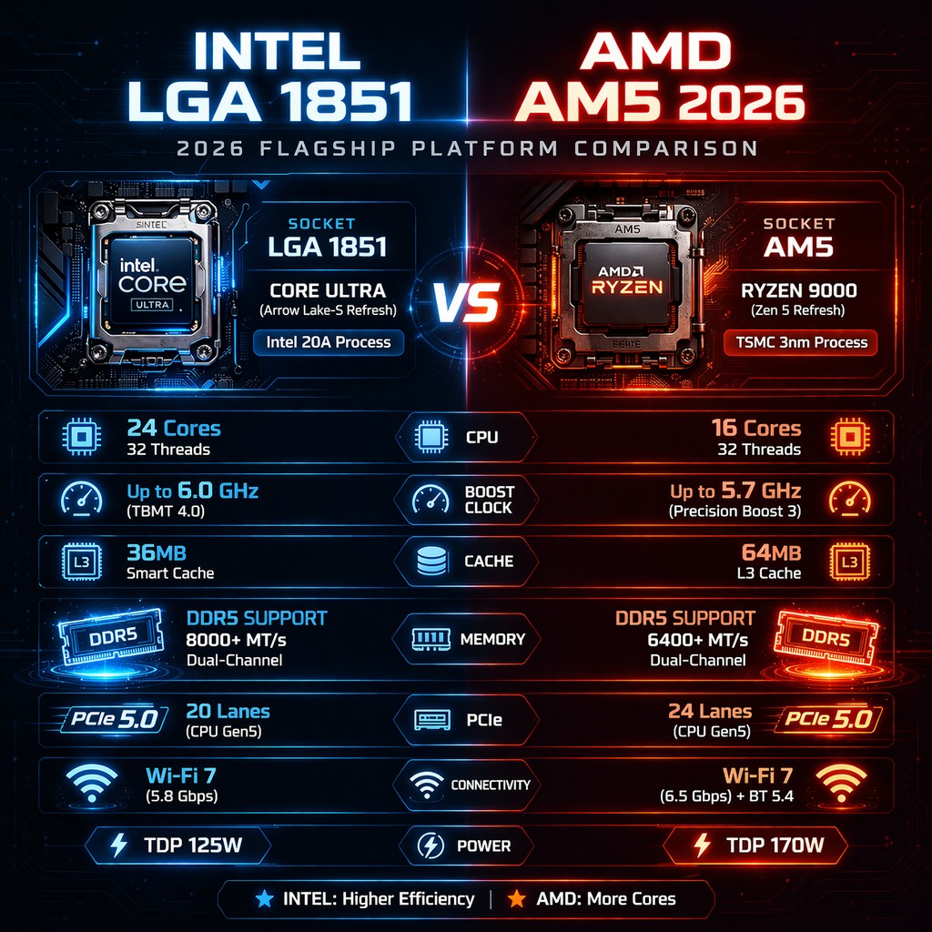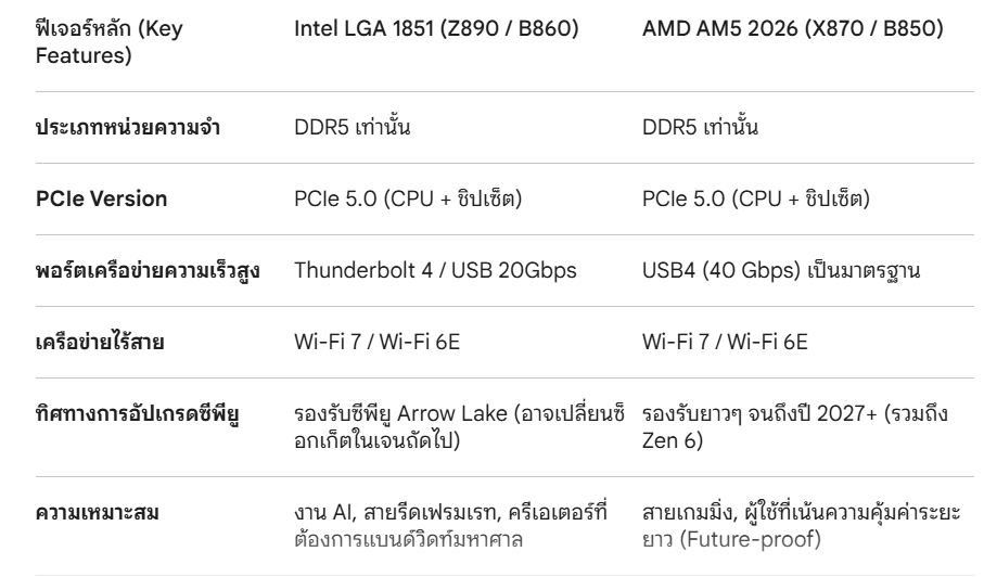 3. เปรียบเทียบสเปคแบบ Head-to-Head (LGA 1851 vs AM5 2026)