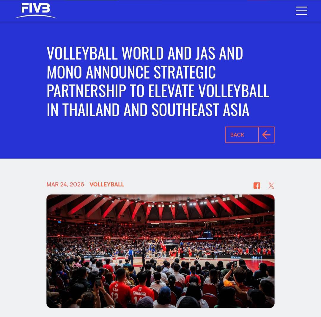 [Spoil] คลิกเพื่อดูข้อความที่ซ่อนไว้https://www.fivb.com/volleyball-world-and-jas-and-mono-announce-strategic-partnership-to-elevate-volleyball-in-thailand-and-southeast-asia/FIVB