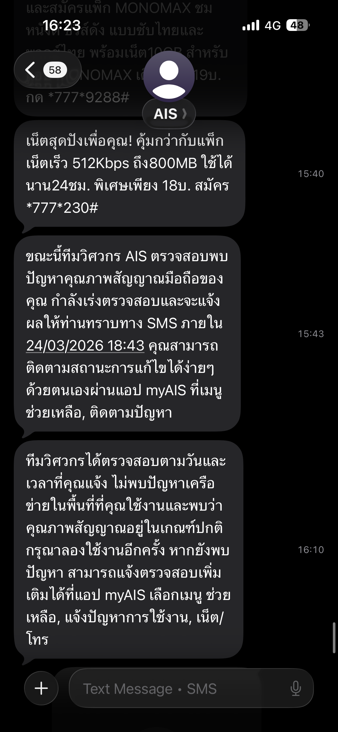 [แก้ปัญหา2] ผมได้ติดต่อ *1175 เพื่อขอความช่วยเหลือ เหมือนทาง Ais เขาจะส่ง เว็บไซต์ สำหรับแจ้งทีมวิศวกร