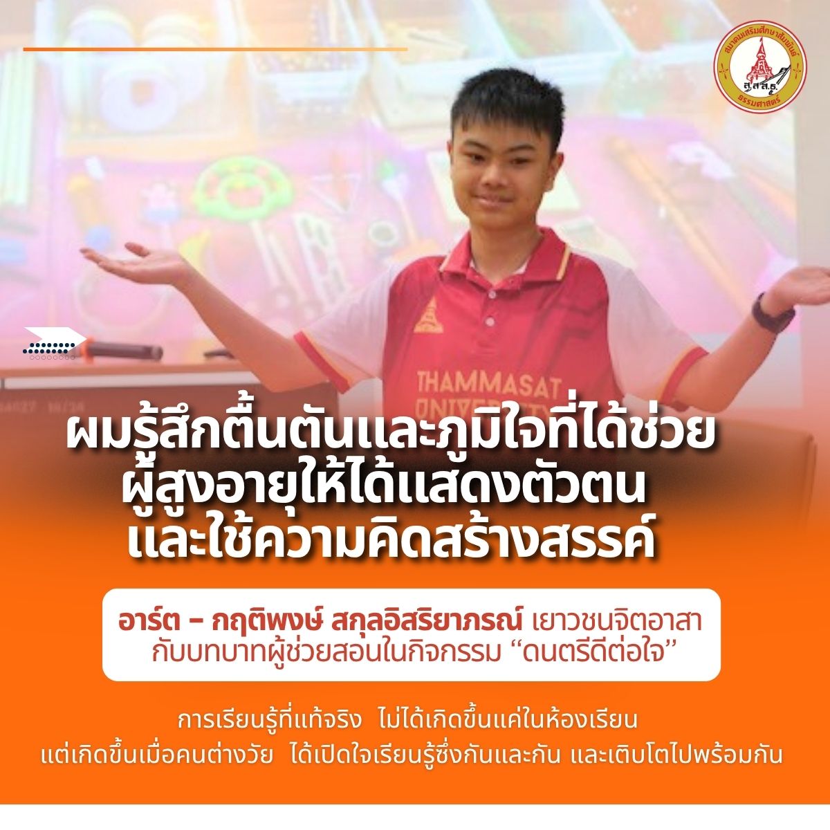 “อาร์ต – กฤติพงษ์ สกุลอิสริยาภรณ์” เยาวชนจิตอาสาที่กลับมาร่วมสร้างความสุขอีกครั้ง ในบทบาท “ผู้ช่วยสอน”
