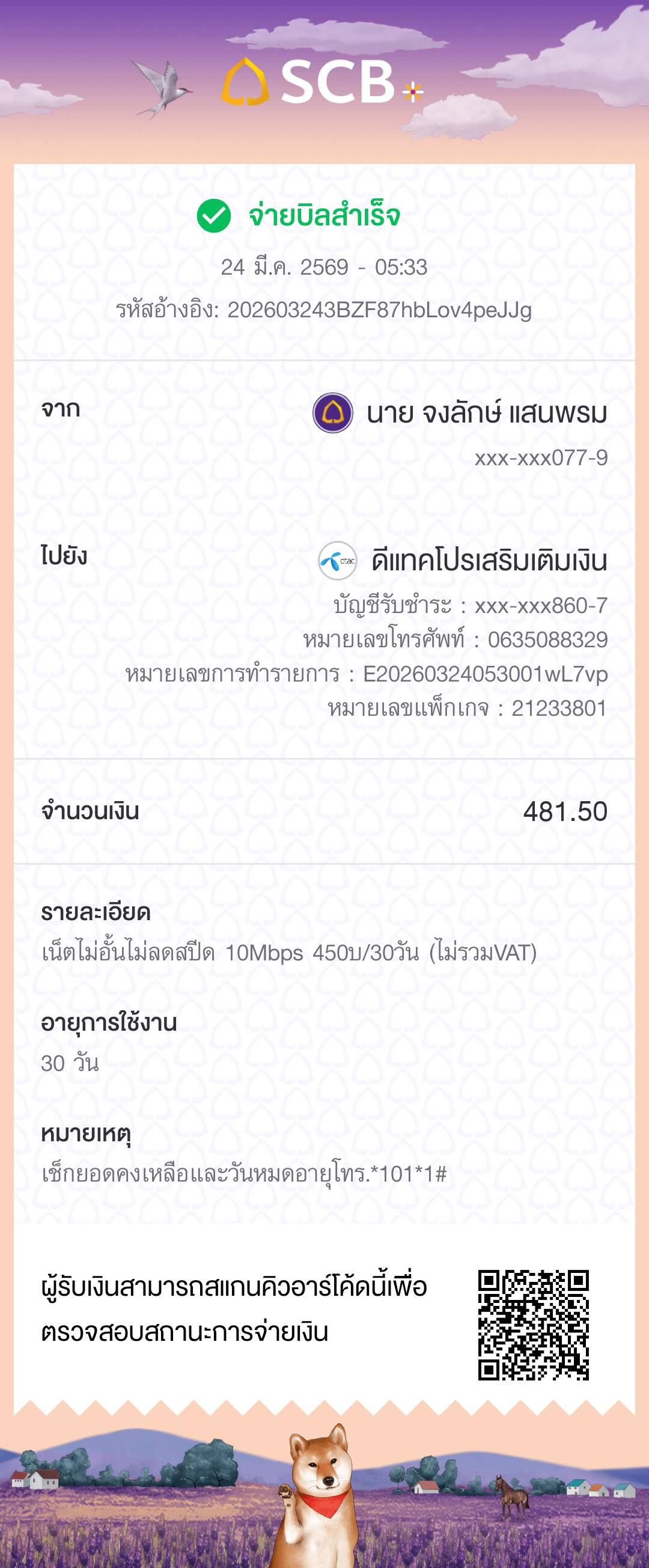 ซื้อแพ็คเก็จเน็ตดีแทคผ่านแอบธนาคารไทยพานิชแต่ไม่ได้รับเน็ต
