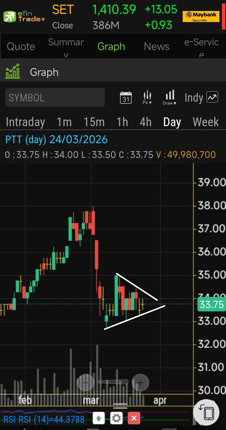 PTT เหมือนแกว่งแคบลง ทำเป็นทรงสามเหลี่ยม