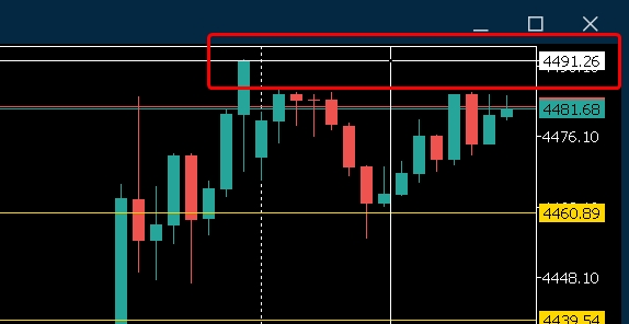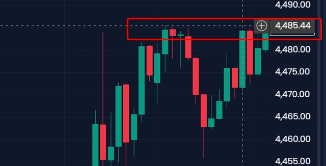 สังเกตุแท่งเทียนมันกระโดดขึ้นไปที่ $4491.26 แต่ไม่มีการถอดไส้ลงมา