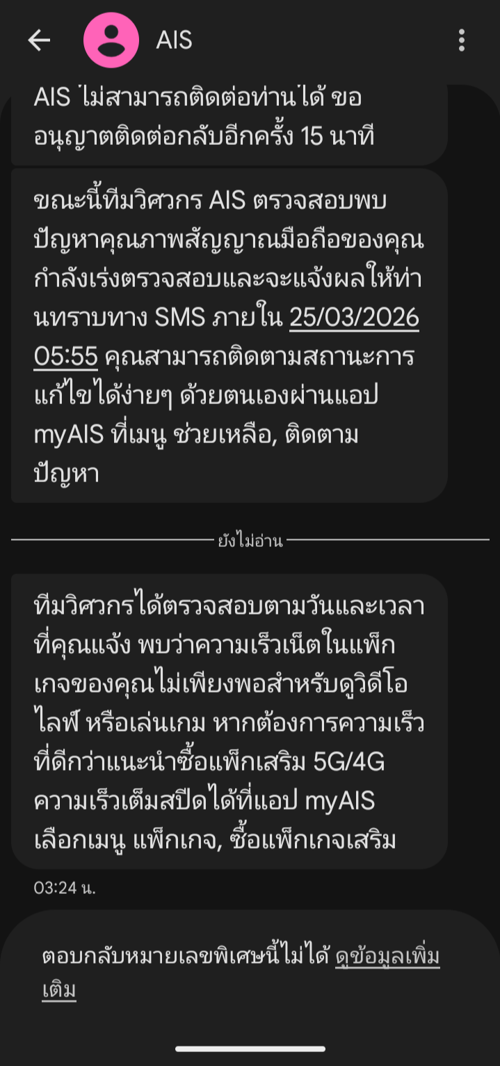 สรุปเพิ่งรู้ว่าสัญญาณมือถือไม่ดีเพราะว่าแพคเกจเน็จหมด หรือ ผมเข้าใจผิดเอง AIS อธิบายที