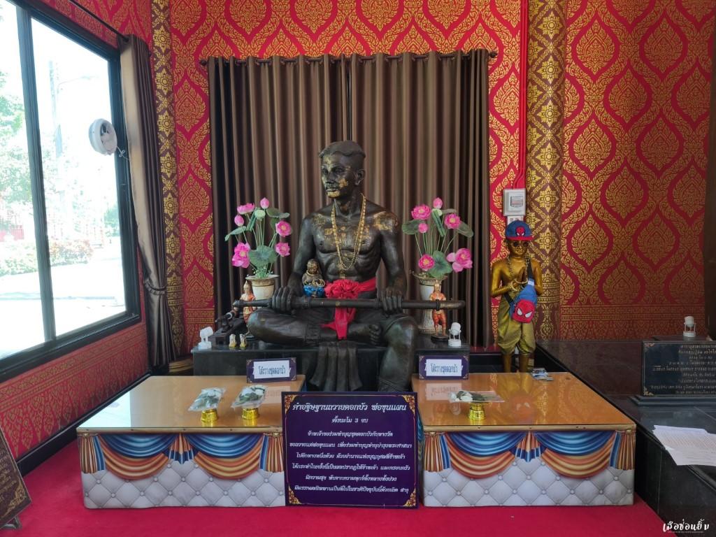 เมื่อเราเดินย้อนกลับมาทางด้านหน้าวัด ซ้ายมือของเราจะพบกับ ศาลาเรือนพระขุนแผน ที่ด้านในมีพระขุนแผนองค์ใหญ่แบบพิมพ์พระเครื่อง และมีรูปหล่อพ่อขุนแผน และแม่ส้มพรายกุมาร ซึ่งเป็นที่มาของ "หลวงปู่ทิม อิสริโก" ผู้สร้างชื่อเกี่ยวกับวัตถุมงคล “ขุนแผนผงพรายกุมาร” อันเลื่องชื่อ เชื่อกันว่ามีพุทธคุณโดดเด่นด้านเมตตามหานิยมและโชคลาภ