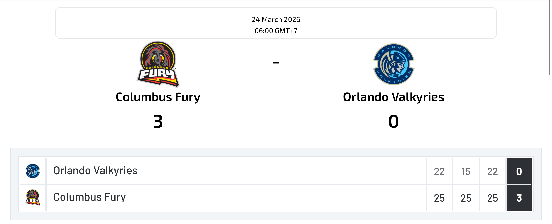 Orlando Valkyries 0-3 Columbus Fury (22-25 15-25 22-25) (59-75)