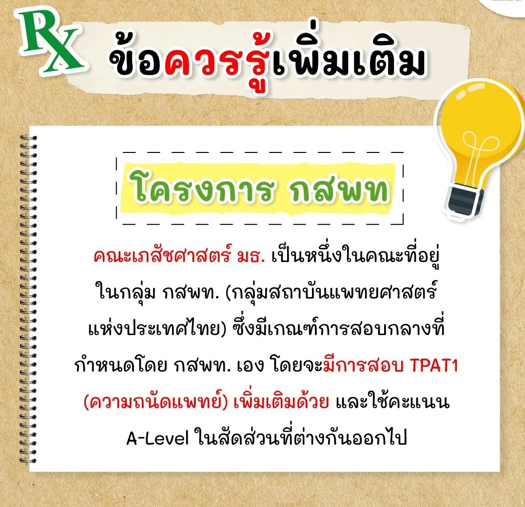 หมายเหตุ บางปีอาจมีการใช้ TPAT1 หรือความถนัดแพทย์แทน GAT ขึ้นอยู่กับประกาศของ กสพท. และมหาวิทยาลัย