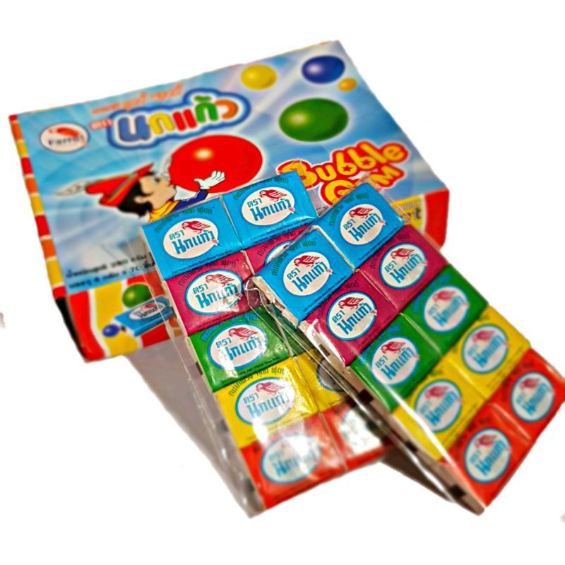 ของผมน่าจะหมากฝรั่งนกแก้ว หมากฝรั่งก้อนสี่เหลี่ยมสีสันสดใสที่เคี้ยวจนจืดแล้วยังเอามาเป่าโป่งได้