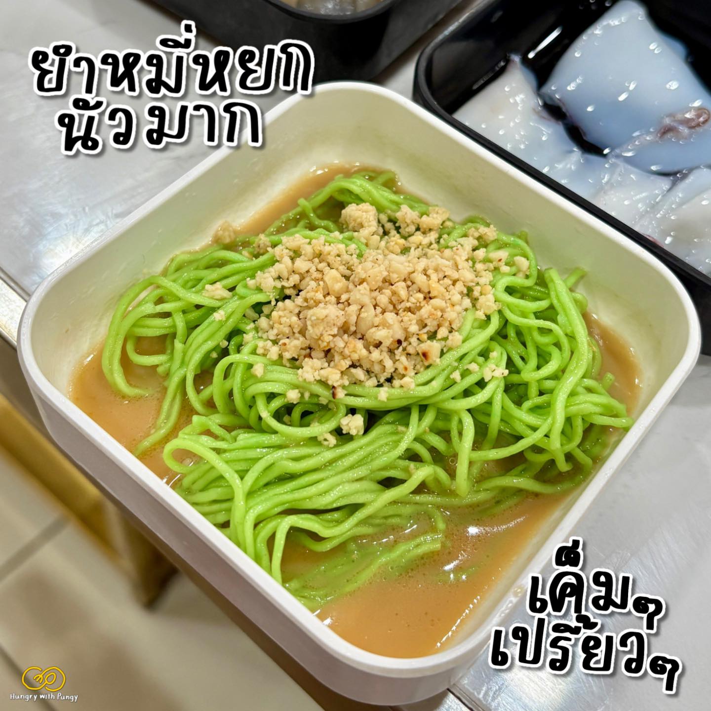 ยำหมี่หยกอร่อยกว่าที่คิดน้ำยำเค็มนัวเปปรี้ยวแต่ตัวเส้นยังแป้งไปนิดนึง