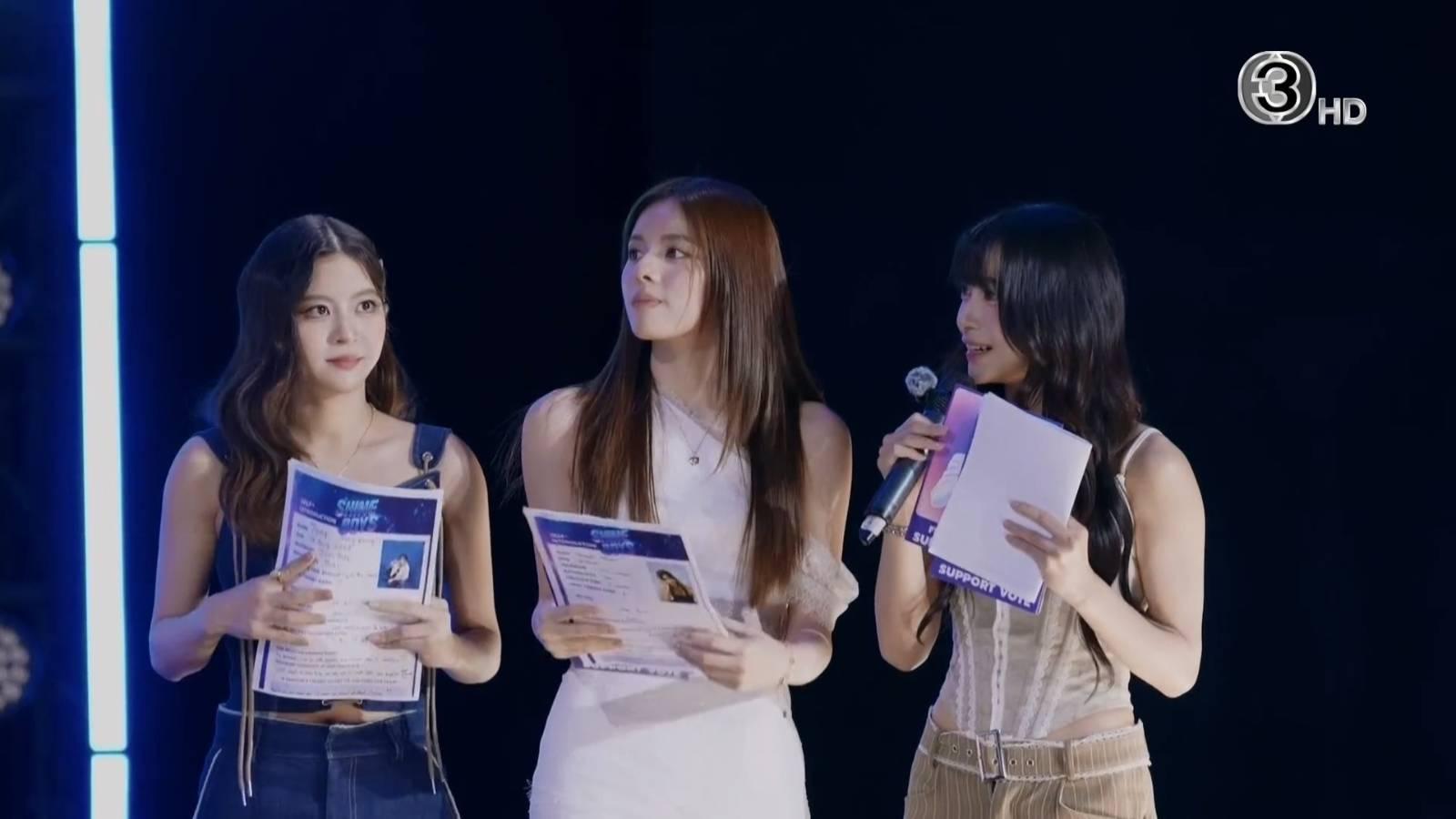 ก็ยังมีอีกสามสาวไอคอนยุคใหม่แห่งวง BNK48 "ฮูพ-แพนเค้ก-ป๊อปเป้อ" มานั่งเป็นกรรมการด้วย