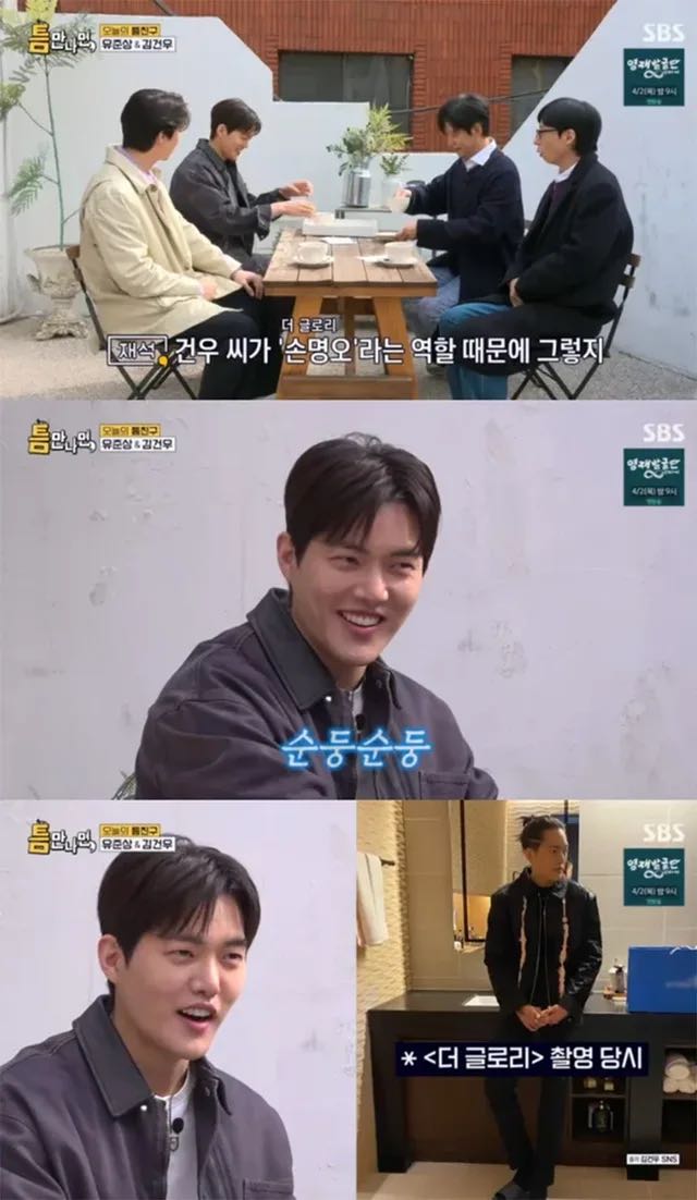 เมื่อหันไปที่คิมกันอู ยูแจซอกกล่าวว่า “นี่เป็นครั้งแรกที่ฉันได้พบเขา เพราะบทบาทของเขาใน 'The Glory' อาจทำให้คนคิดไปอีกทาง แต่ในชีวิตจริง เขามีใบหน้าที่ดูใจดีมาก” คิมกันอูตอบว่า “ตั้งแต่นั้นมาผมได้เพิ่มน้ำหนักประมาณ 5 กิโลกรัม” ขณะที่ยูยอนซอกเสริมว่า “ความประทับใจจากซอนมยองโอยังคงอยู่” คิมกันอูหัวเราะและเห็นด้วยว่า “ใช่แล้ว คนบอกว่าดีที่ผมเพิ่มน้ำหนักนิดหน่อย”