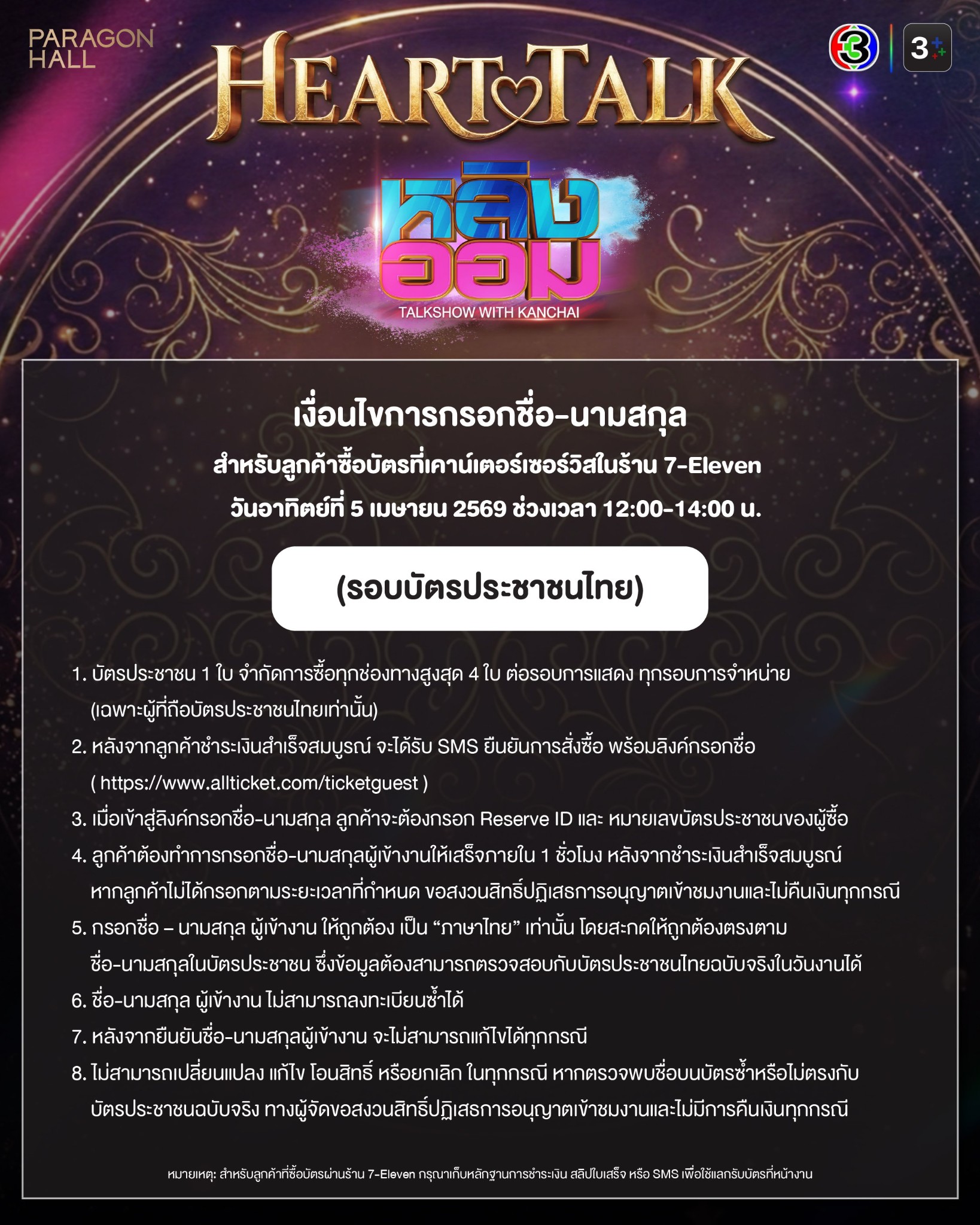 ณ พารากอน ฮอลล์ ชั้น 5 สยามพารากอน Tickets on sale: วันอาทิตย์ที่ 5 เมษายน 2569
