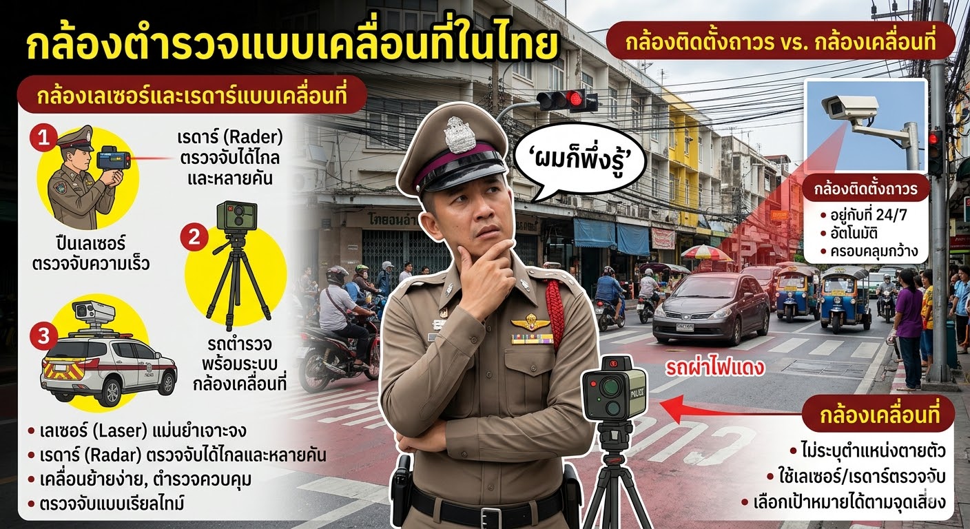 กล้องตำรวจแบบเคลื่อนที่ในไทยมีไหม? เลเซอร์-เรดาร์ต่างจากกล้องติดตั้งถาวรอย่างไร